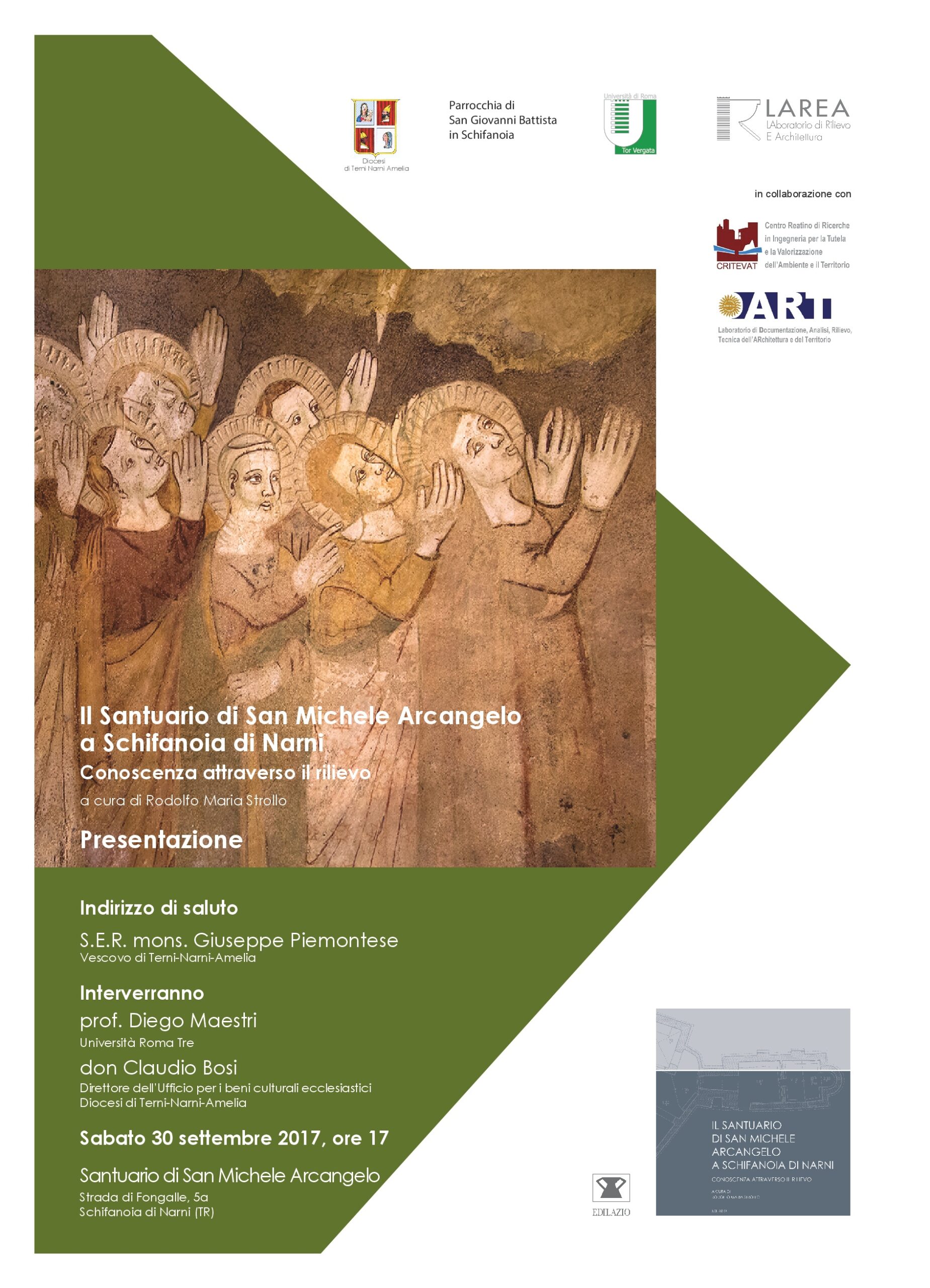 Sabato 30 settembre alle ore 17, presso la Chiesa di San Michele Arcangelo di Schifanoia in Narni, si terrà la presentazione del progetto di valorizzazione e riscoperta della chiesa stessa. All’incontro saranno presenti il professor Diego Maestri dell’Università degli Studi Roma Tre Dipartimento di Progettazione e studio dell’architettura, Don Claudio Bosi direttore dell’Ufficio per i beni culturali ed ecclesiastici della Diocesi di terni Narni e Amelia, il curatore del volume il Prof. Rodolfo Maria Strollo dell’Università degli Studi di Roma “Tor Vergata” Dipartimento di Scienze e Tecnologie della Formazione e Sua Eccellenza Mons. Giuseppe Piemontese, vescovo di Terni-Narni-Amelia.