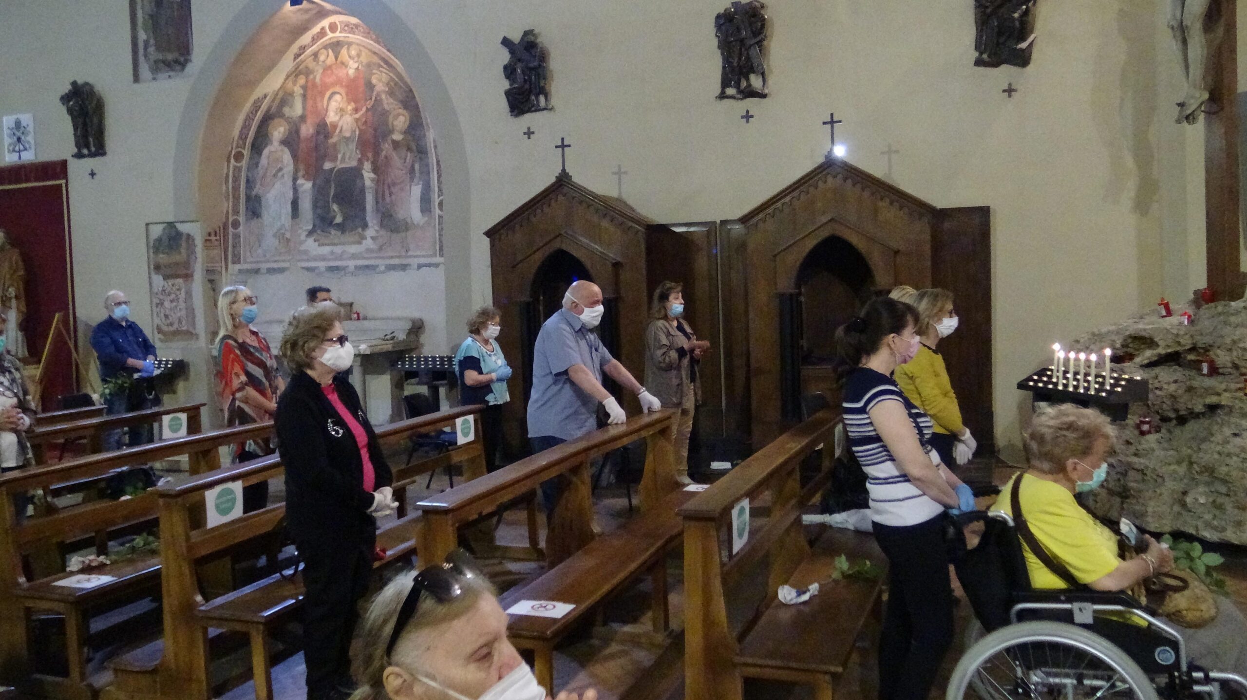 Venerdì 22 maggio saranno celebrate le sante messe alle ore 7.30 – 9.30 – 11.30, che secondo le disposizioni per le celebrazioni delle messe con il popolo nella Fase 2 dell’emergenza Covid-19, adottate dal Protocollo Stato-CEI, prevedono la presenza di massimo 85 persone per ogni messa, con l’ingresso in chiesa che sarà possibile 15 minuti prima della celebrazione per la sistemazione nei posti, predisposti secondo il distanziamento previsto dalle nuove disposizioni.