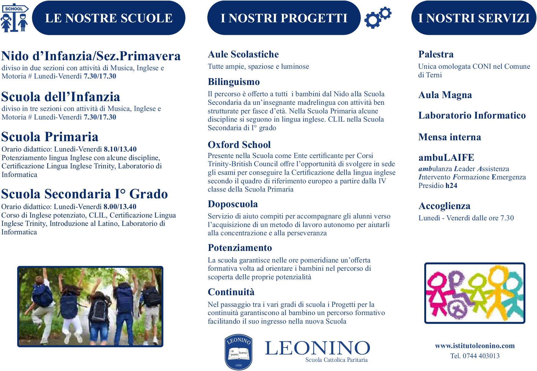 Aperte le iscrizioni alle scuole dell’Istituto Leonino, un’ occasione per conoscere meglio la scuola cattolica paritaria di Terni nelle sue varie articolazioni e offerte formative per il prossimo anno scolastico, dal nido all’infanzia fino alla scuola secondaria di I grado. Soprattutto un’occasione per ricordare la valenza centrata sulla formazione valoriale d’ispirazione cattolica dell’Istituto, che ha segnato la storia della città e dove si sono formate centinaia di persone.