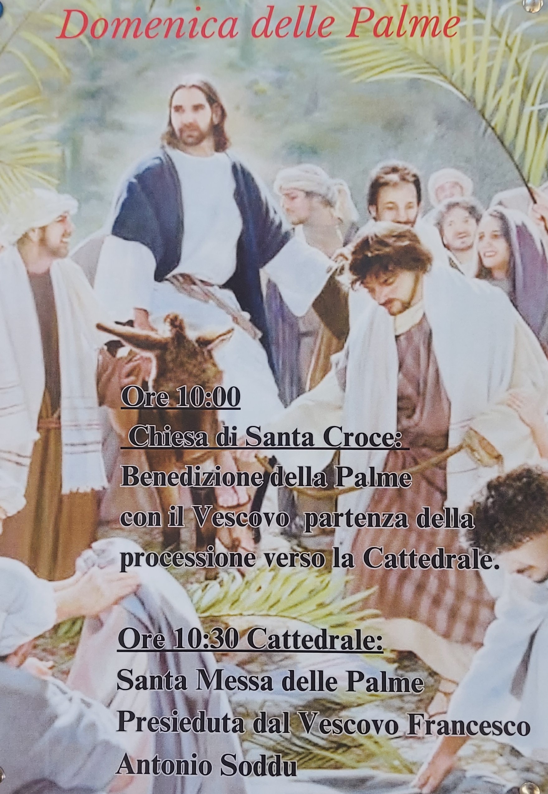 La liturgia di domenica 2 aprile avrà inizio alle ore 10.00 sul sagrato della chiesa di Santa Croce per il rito della benedizione dei rami d’ulivo e la processione fino in Cattedrale dove, alle 10.30, la liturgia proseguirà con la lettura della Passione di Gesù e la celebrazione eucaristica.