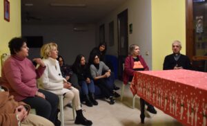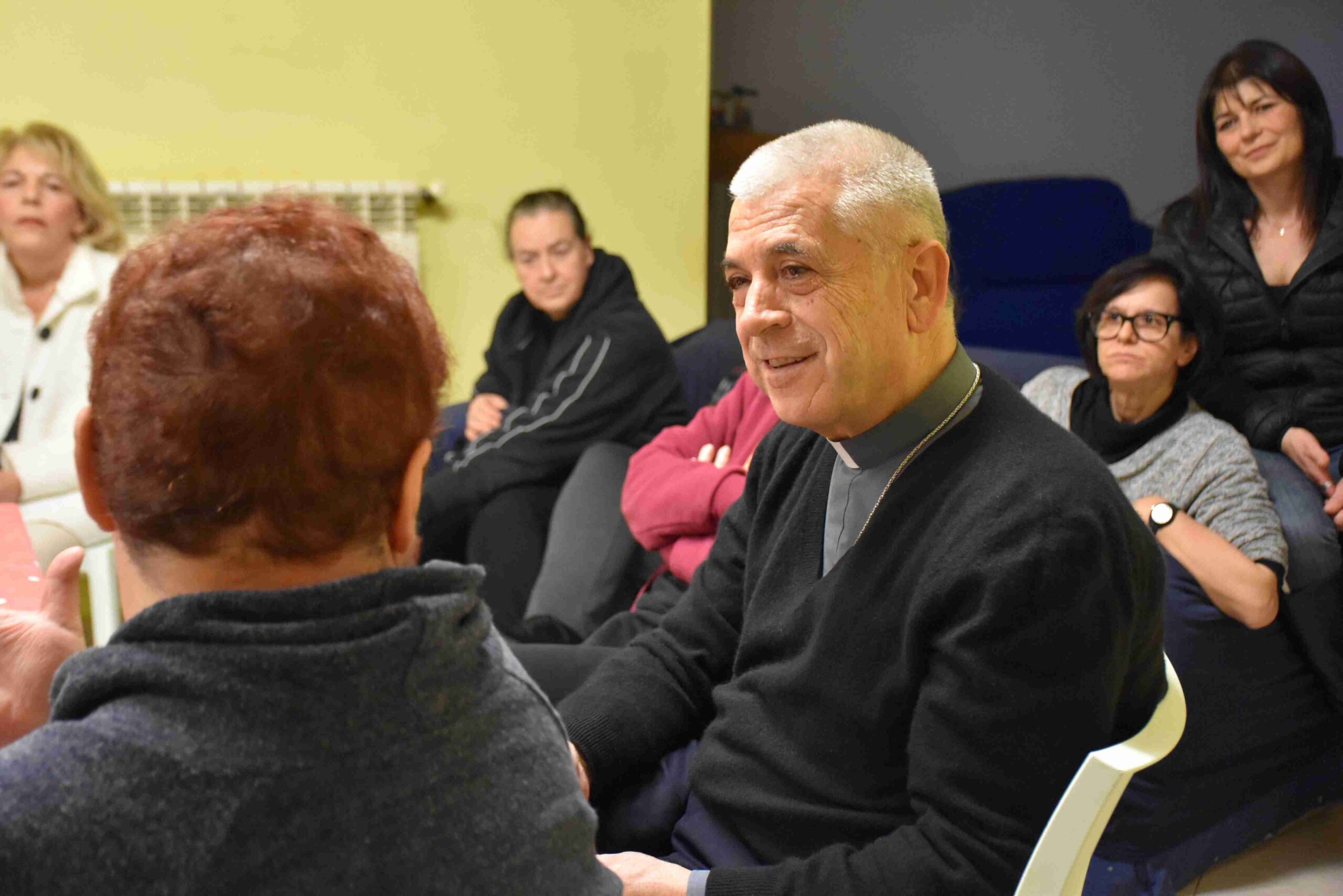 Il vescovo ha visitato la struttura e si è intrattenuto in dialogo con le ospiti, ascoltando i loro racconti di vita quotidiana nella casa e delle attività svolte nei centri diurni e nella struttura agricola di Vascigliano. Si è complimentato con tutti per il bel clima di gioia e di familiarità dell’incontro e per gli interessanti e profondi racconti che hanno toccato anche aspetti di fede e spiritualità. Al termine la benedizione del vescovo e la consegna a mons. Soddu di doni da parte delle ospiti della struttura.