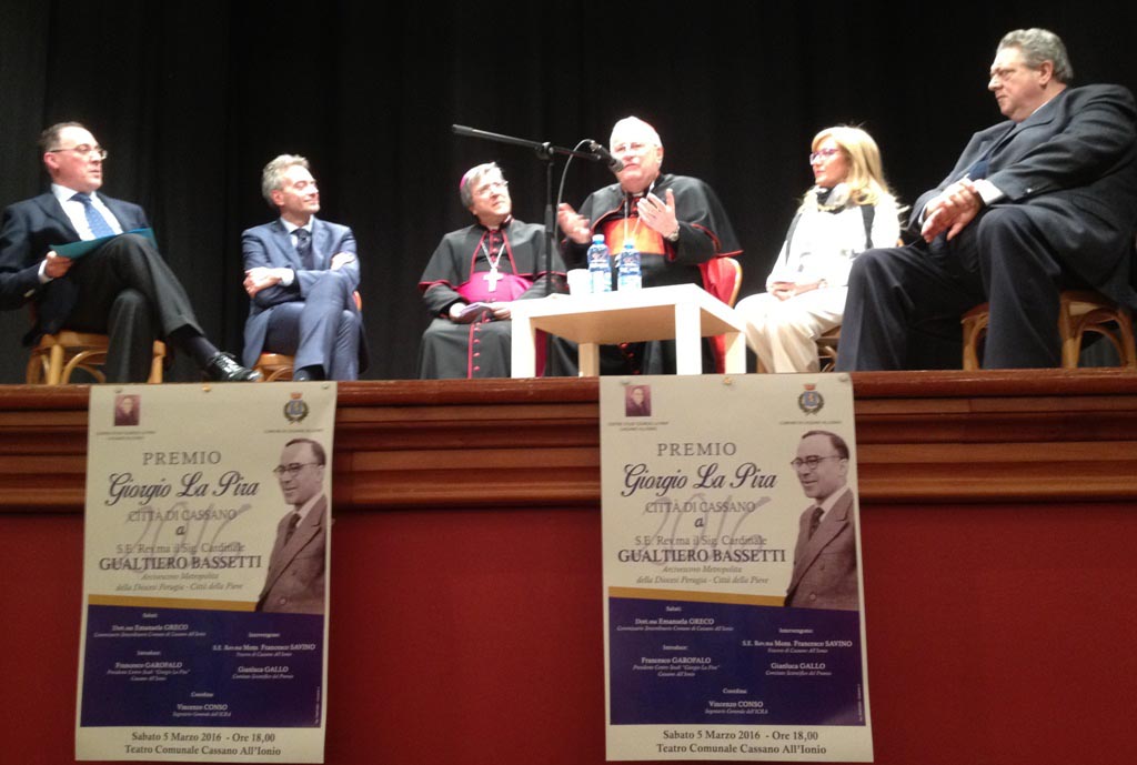 Cassano allo Ionio, Teatro comunale, “Premio Giorgio La Pira – Città di Cassano 2016” al cardinale Bassetti.