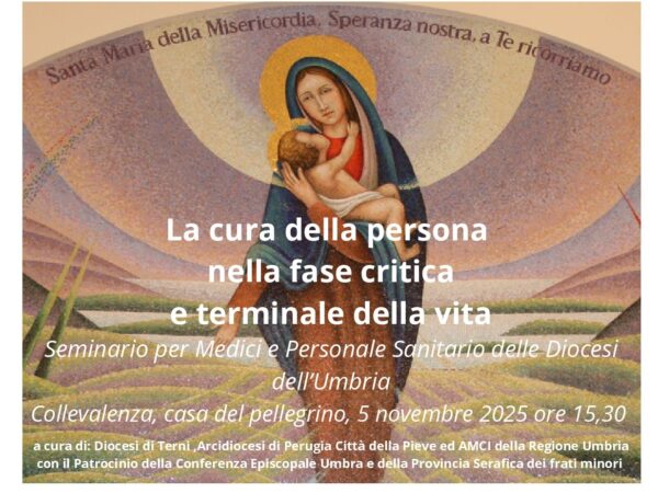 Mercoledì 5 novembre 2025 alle ore 15,30 a Collevalenza si terrà il seminario “La cura della persona nella fase critica” rivolto ai medici e personale sanitario delle diocesi dell’Umbria, promosso dalla… Read More