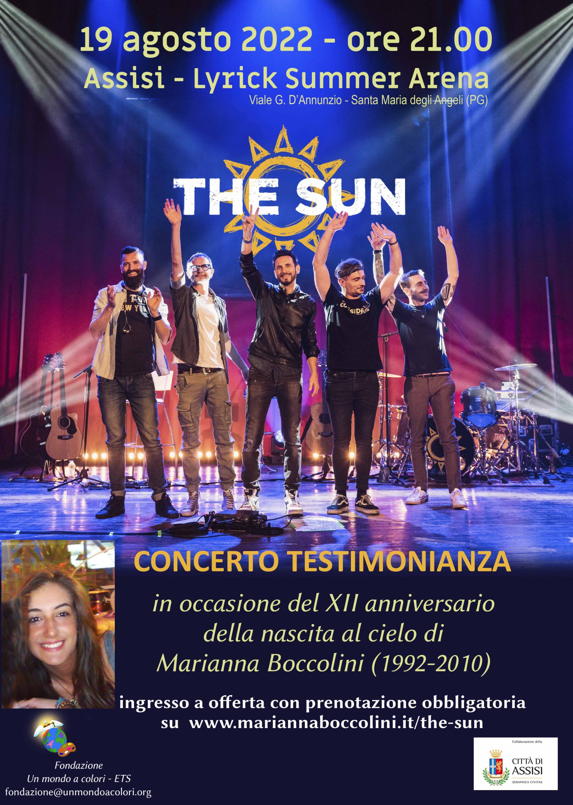 Il 19 agosto al Lyrick Summer Arena di Santa Maria degli Angeli, si terrà il concerto in occasione del XII anniversario della nascita al cielo di Marianna Boccolini (1992-2010), giovane di Narni morta in un incidente stradale.