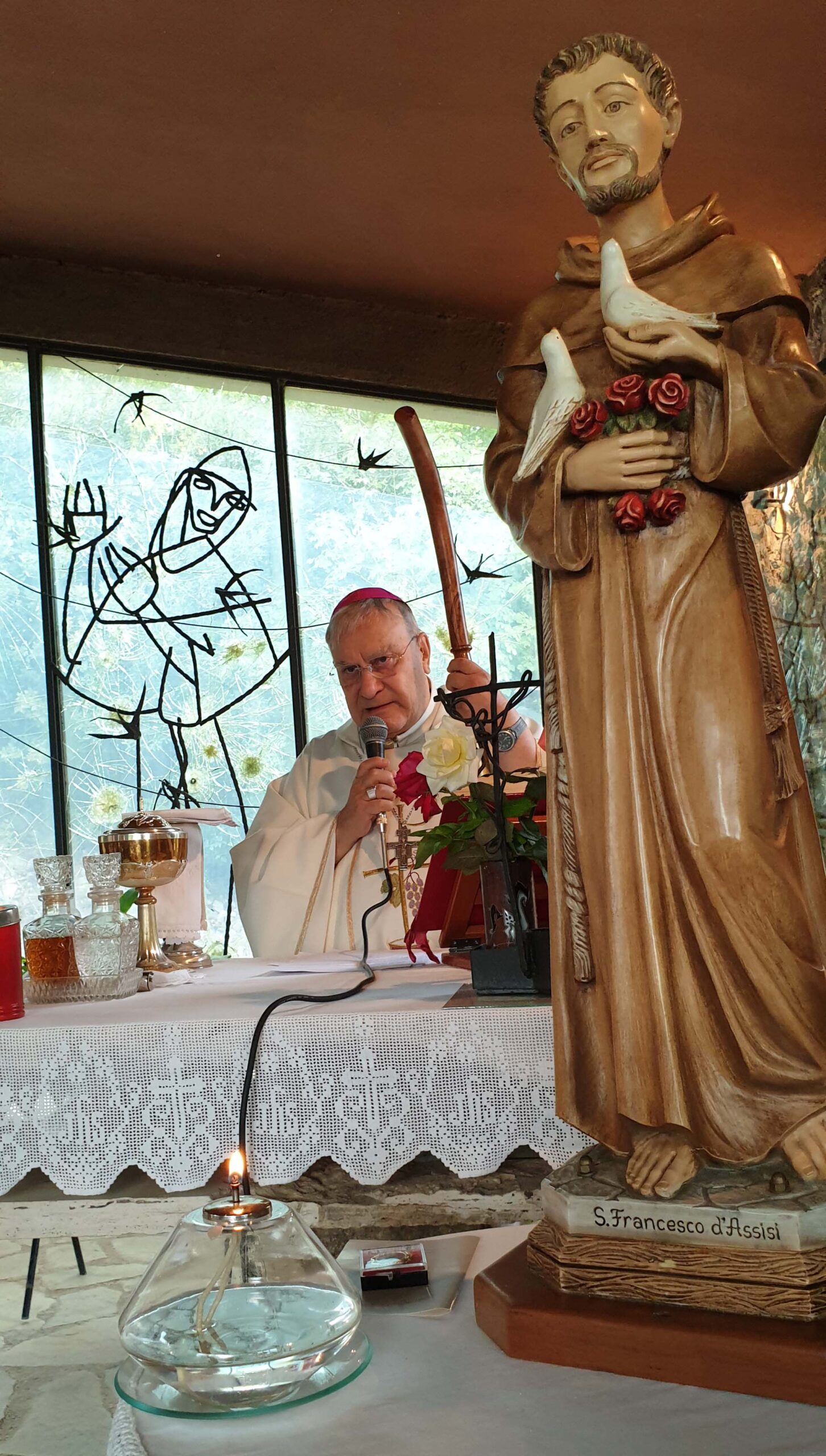 La messa di domenica 3 ottobre nella cappella è stata celebrata dal vescovo Giuseppe Piemontese che ha invitato gli alvianesi a “Continuare questa tradizione che rafforza la comunità cristiana anche dopo 40 anni dalla dedicazione della cappella. Stiamo vivendo un periodo difficile per la pandemia e coltiviamo nel cuore una speranza che questo tempo difficile abbia fine e che il coraggio delle persone possano trasformare il tessuto sociale e il modo di vivere. Anche voi di Alviano volgendo sguardo a Francesco di Assisi, ponete segni di speranza nell’essere cristiani che seguono Gesù e si sforzano di vivere come Gesù con amore e passione, alla luce del vangelo come regola di vita.