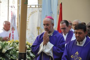 Il corteo che ha accompagnato don Marcello è partito dalla chiesa della Madonna del Cardellino dove era stata allestita la camera ardente ed è sceso verso il paese fino al castello dove ha avuto luogo la cerimonia funebre.