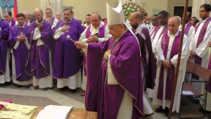Il vescovo ha ricordato don Marcello con parole di affetto: “nella sua semplicità allegra, gradevole, di ragazzone scanzonato, si è lasciato pervadere dalla sapienza del Signore, sulla scia di San Francesco d’Assisi nella esperienza della perfetta letizia o della santa infanzia evangelica” e in particolare la sua devozione per la Madonna che “è stata la chiave di lettura della sua vita e del suo ministero. La consapevolezza di aver ricevuto lo Spirito che rende figli adottivi, lo Spirito che attesta che siamo figli di Dio, ma anche figli di Maria, lo rendeva felice. Specie nell’ultimo anno ha imparato il significato delle parole dell’Apostolo nella seconda lettura:“E se siamo figli, siamo anche eredi: eredi di Dio, coeredi di Cristo, se davvero prendiamo parte alle sue sofferenze per partecipare anche alla sua gloria”.