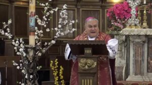 “Una celebrazione singolare – ha detto il vescovo – determinata dalla epidemia del Coronavirus e dalle norme delle autorità, che non prevedono celebrazioni col popolo: per ribadire il gemellaggio e la comunione con la comunità civile ed ecclesiale di Civitavecchia, che insieme alla nostra Chiesa venera come patrona santa Fermina, per l’assenza fisica del popolo, che genera sofferenza e mortificazione per tanto isolamento e solitudine. Ancora una volta i nostri martiri sono esempio, incoraggiamento e sostegno alla nostra Chiesa e alla Chiesa intera in questo tempo, definito la nuova era dei martiri, testimoni della fede, della speranza e della carità. In questo tempo di epidemia siamo spinti a vivere con intensità le limitazioni, le sofferenze e i disagi che con rapidità improvvisa ci sono capitati con la quarantena, con la privazione della libertà, l’isolamento e la solitudine d tante persone, la sofferenza fisica e morale di tanti malati e anziani e anche la nostra sofferenza, la morte di tante persone e la mortificazione per non aver potuto dare onore e suffragio ai defunti e conforto e consolazione ai familiari, i problemi legati alle varie forme di povertà, alla disoccupazione, e alle fosche attese di disagi e di precarietà. In questi due mesi abbiamo pregato da casa, abbiamo forse scoperto la dimensione della famiglia quale chiesa domestica, abbiamo assistito alla messa trasmessa in streaming, ma ciò non può durare a lungo, non può bastare. E’ conforto e consolazione per chi non può partecipare con la presenza, aiuta la fede e sostiene la speranza, ma non è sufficiente ad alimentare la vita spirituale.