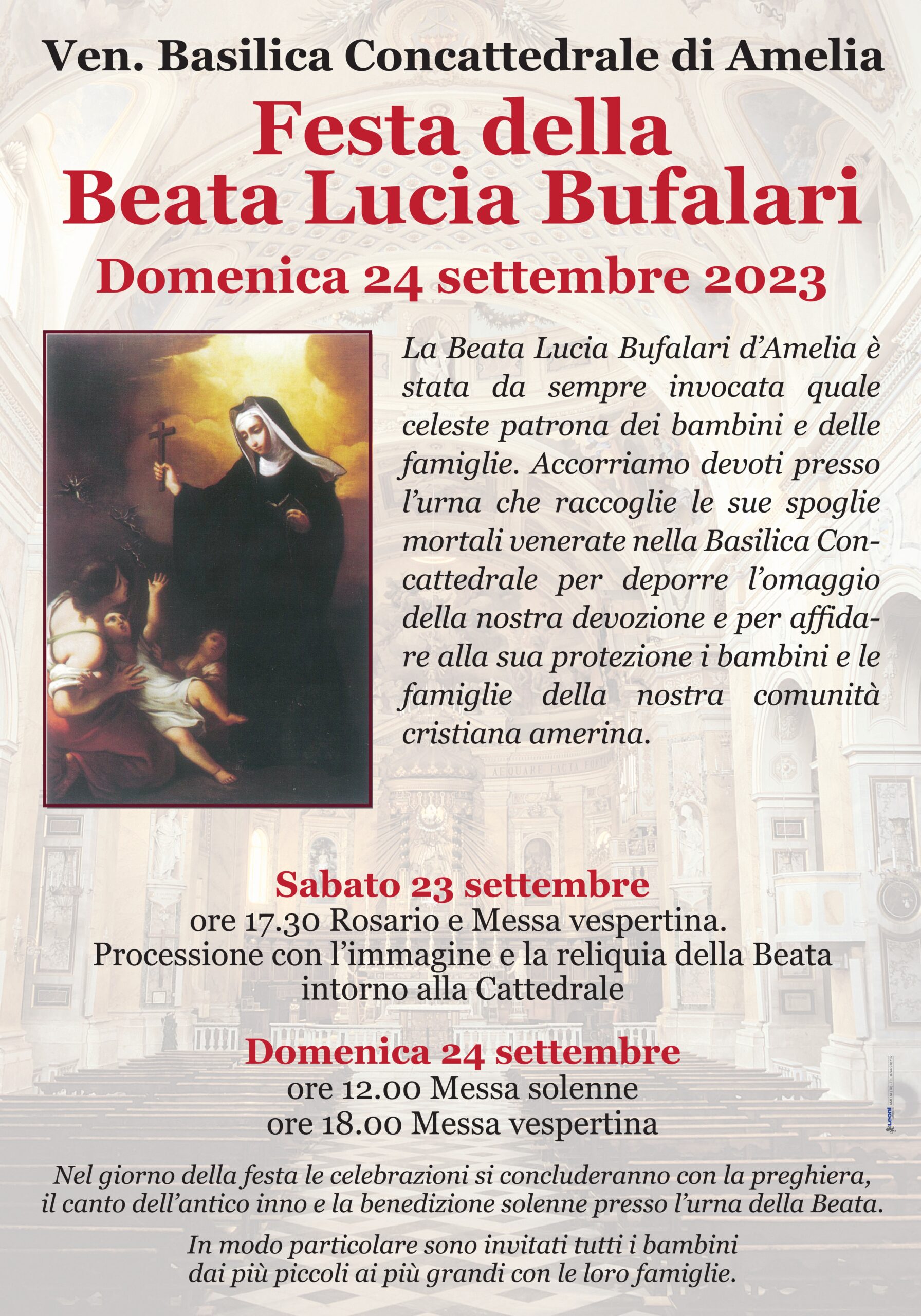 Il 24 settembre 2023 nella Concattedrale di Amelia sarà celebrata la festa della Beata Lucia Bufalari.