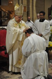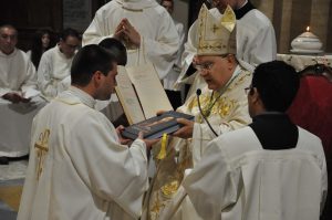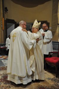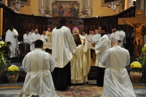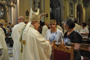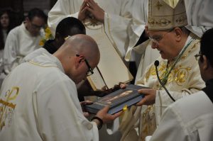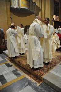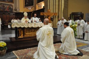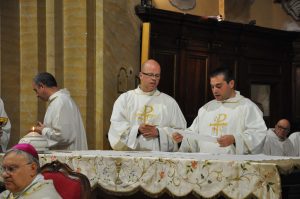 “Gesù, sommo sacerdote per mezzo del nostro sacerdozio ministeriale – ha detto il vescovo -, sostenuto dal comune sacerdozio dei fedeli, realizza tutto ciò ed è garanzia della verità di ciò che avviene e completamento di quanto manca nelle vostre persone. Ciò si esprime e si traduce meglio attraverso le seguenti azioni: servire, amare, perdonare, annunciare la Parola. sostenere e condividere l’esistenza con i poveri, distribuire l’Eucarestia, costruire la comunità e la fraternità”.