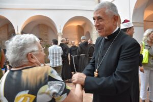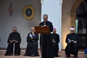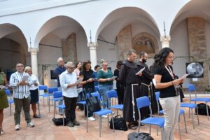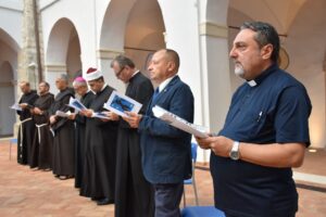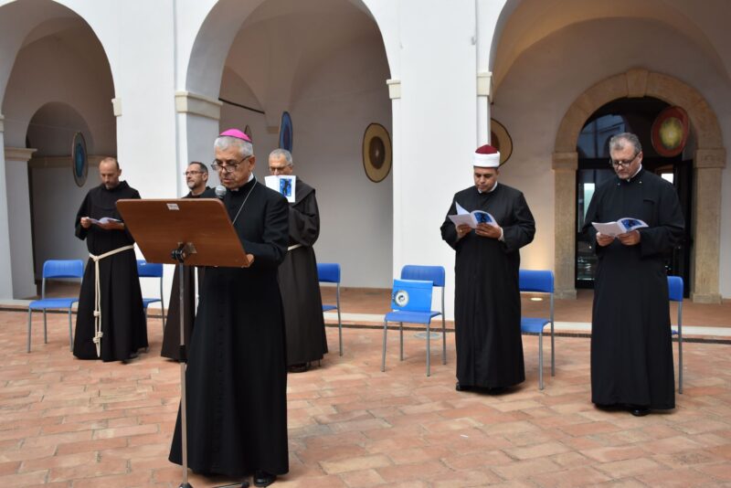 “Noi qui a conclusione di questa Celebrazione ci impegniamo nuovamente ad accogliere le istanze a cui invita Papa Francesco con la Laudato Si’ di una conversione ecologica, cambiamenti nello stile di vita e nella società ed una forte azione politica, per agire con l’urgenza richiesta dalla crisi climatica e sociale. In comunione con tutte le Chiese e con i diversi credenti assumiamo l’impegno a pregare con e per il creato, a vivere con semplicità e sobrietà, a promuovere la cura della casa comune a seconda delle nostre possibilità”. E’ stata questa la conclusione dell’incontro di preghiera interreligiosa ad Amelia al chiostro di Sant’Agostino nell’ambito del convegno “Madre Terra sorelle stelle”, proclamata insieme dal vescovo Francesco Antonio Soddu, il ministro generale dei Frati minori fra Massimo Fusarelli, il ministro provinciale dei Frati minori fra Francesco Piloni, il grande Imam di Roma Nader Akkad, il pastore pawel Gajewski, il prete ortodosso padre Vasile Andreica e guidata dal responsabile dell’ufficio ecumenismo e dialogo della diocesi don Enzo Greco.
