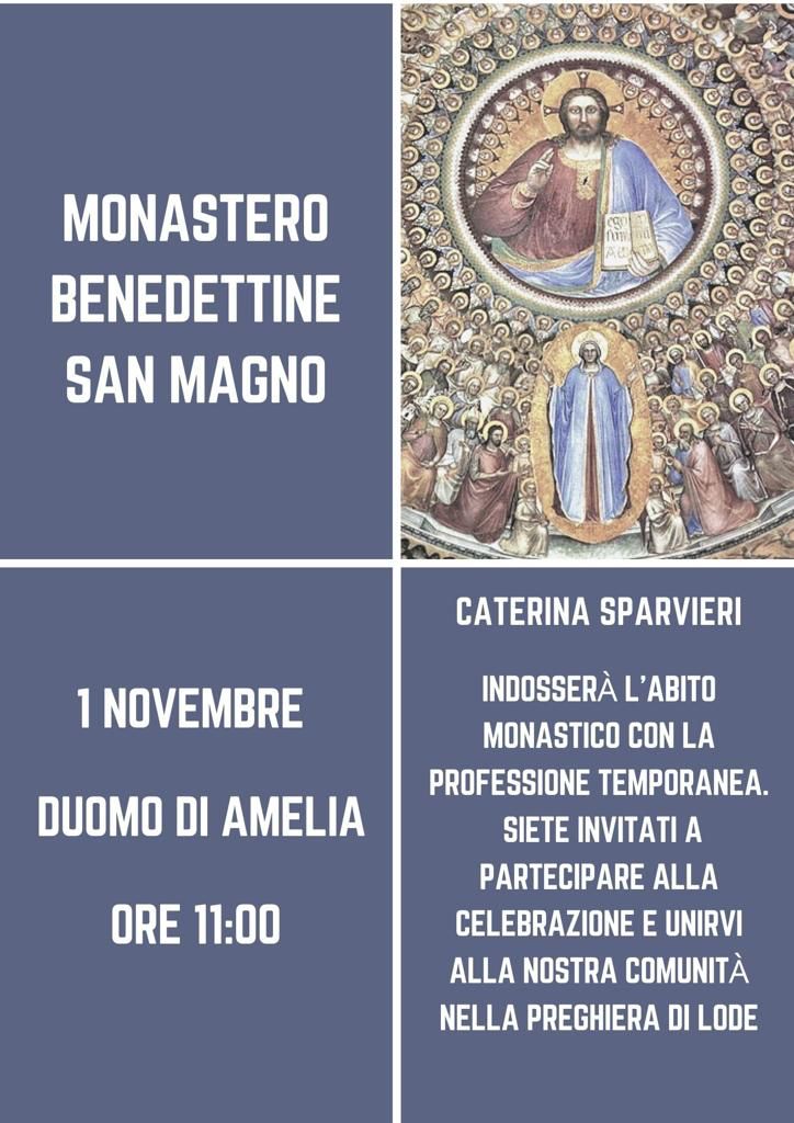 La Liturgia della Professione avverrà nella concattedrale di Amelia nella festa di tutti i Santi, 1 novembre alle ore 11.00.