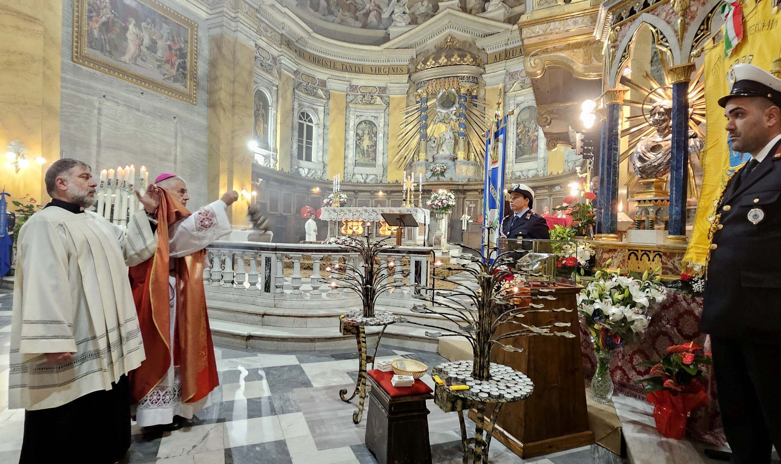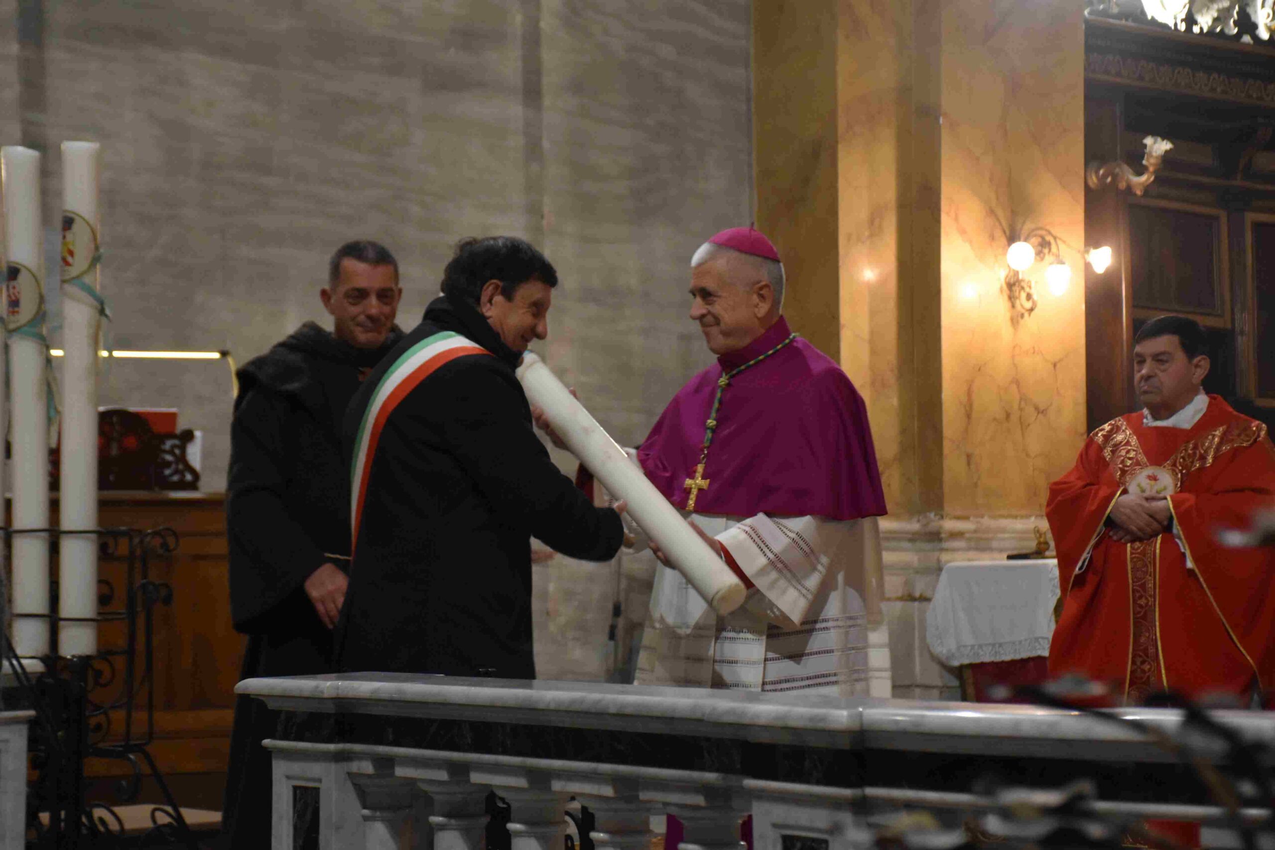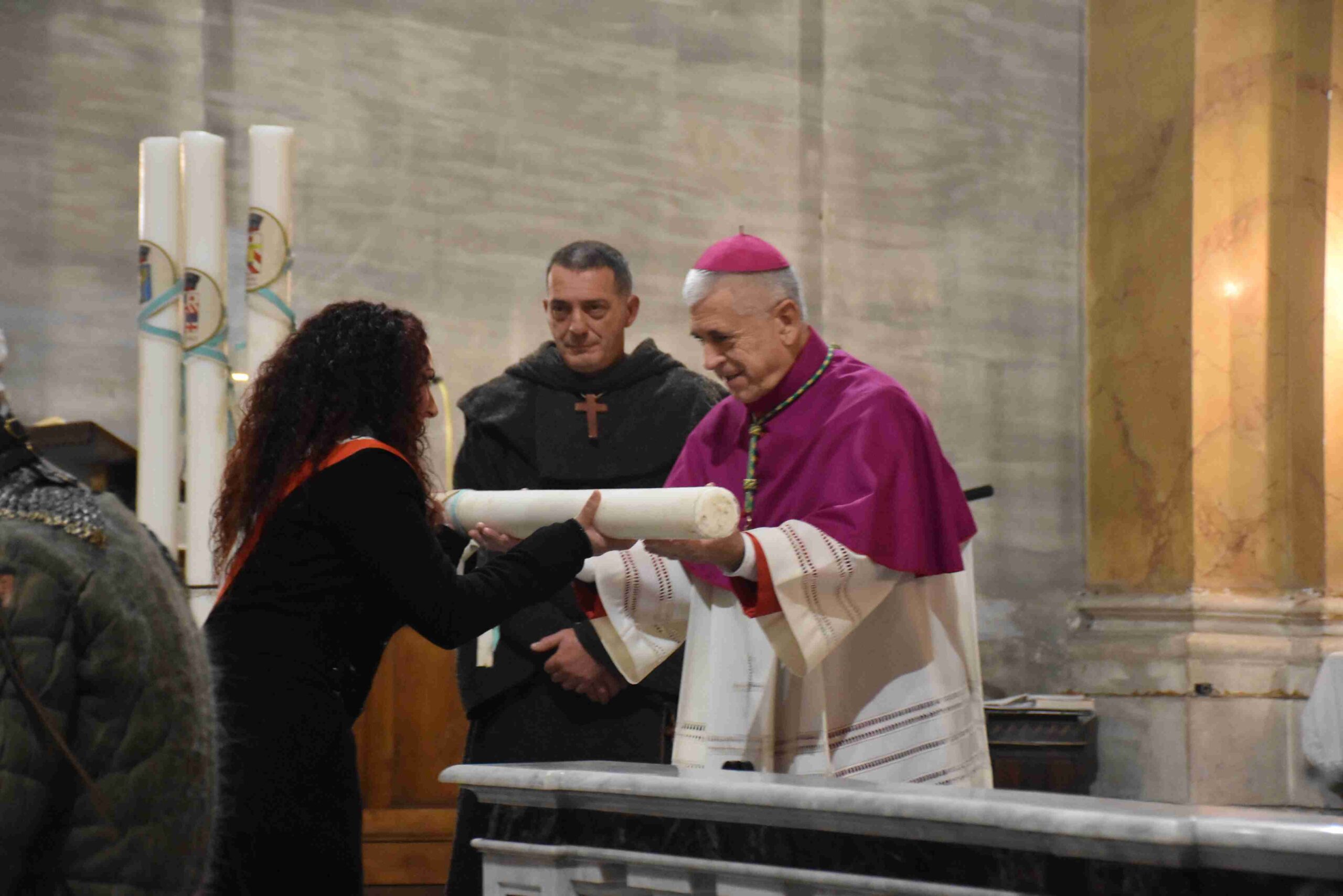 Ed ha poi aggiunto: “Santa Firmina ci insegna che la vita va sì consumata ma come la candela, come i ceri che voi avete offerto in questa solennità. Una vita che si consuma diffondendo luce, senso, chiarore. Firmina, la giovane Firmina è esempio fulgido per tutti, ma specialmente per i ragazzi e i giovani è esempio di luce, di luce che nasce dalla ricerca ed incontro col Signore Gesù e dal coraggio di essere testimone credibile di speranza di vita. Per capire tutto questo è necessario saper distinguere il bene dal male, le cose buone dalle cattive. Oggi se non stiamo attenti l’obiettivo non è più quello della manipolazione delle coscienze quanto piuttosto quello della decoscientizzazione ossia quello di eliminare la percezione della coscienza; di addomesticarla, di renderla impassibile. Ciò equivale all’annullamento o per lo meno addomesticamento di quel sacrario interiore proprio di ogni individuo che gli consente di fare delle scelte responsabili. L’umanità sarà in grado di utilizzare l’intelligenza artificiale con i criteri dell’intelligenza naturale che si orienta al bene mediante la buona coscienza?