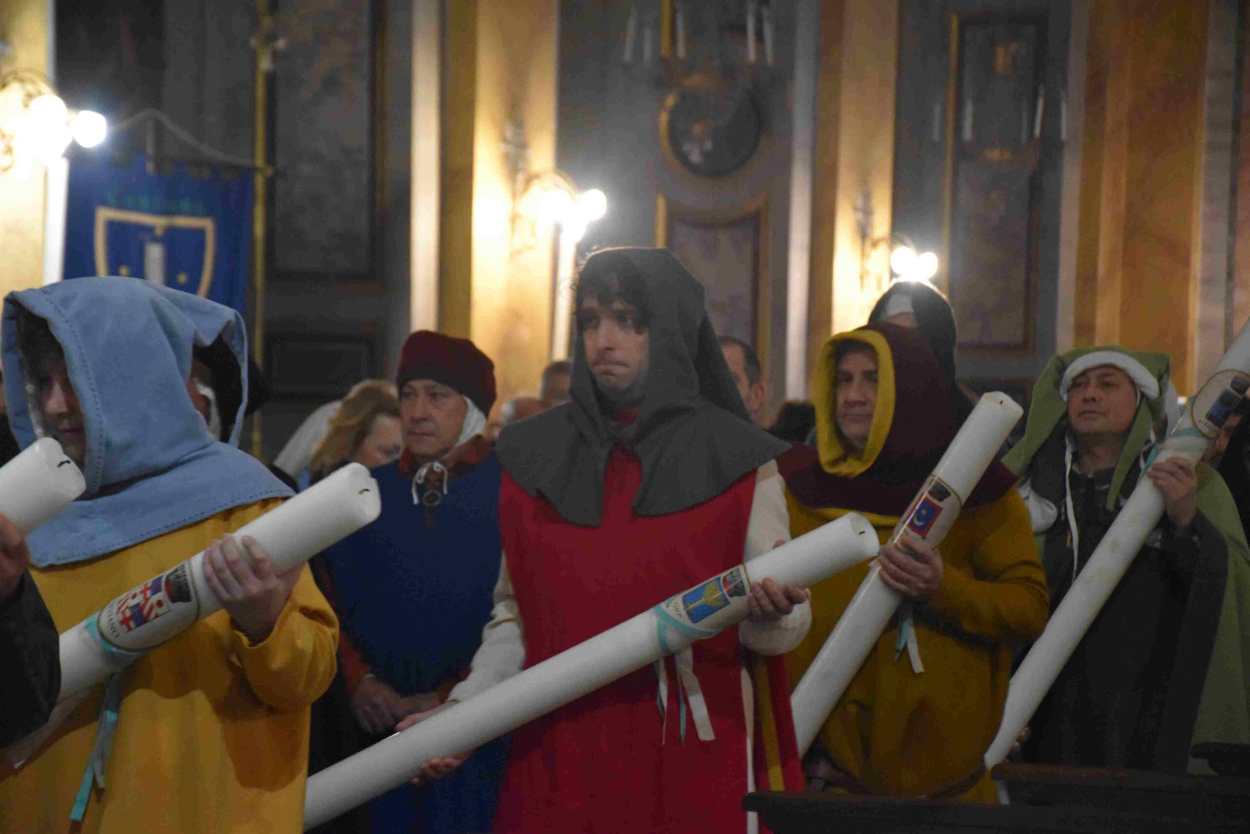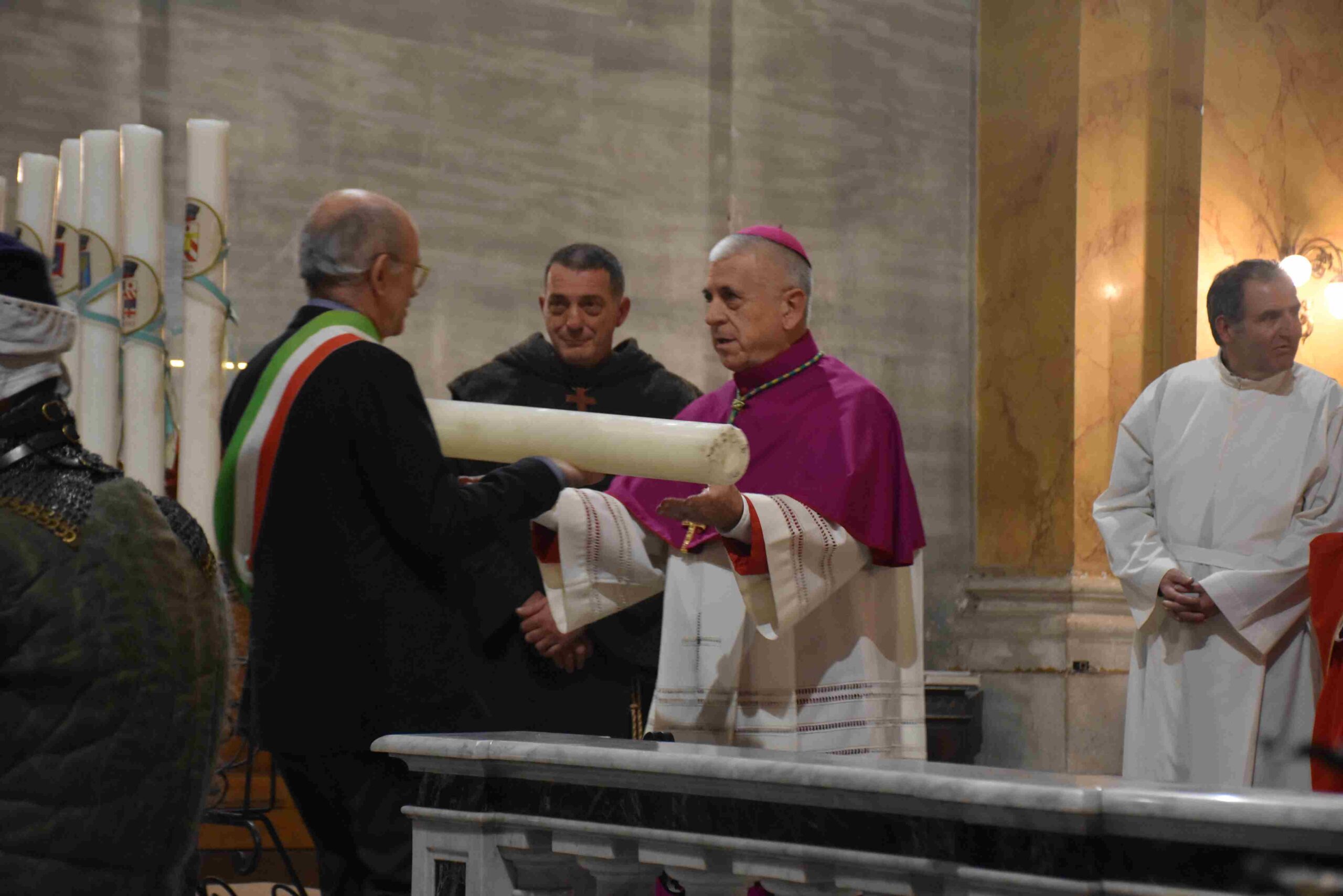 La celebrazione, animata dai canti liturgici eseguiti dal coro della Vicaria di Amelia-Valle Teverina, è stata preceduta dalla rievocazione storica della pesatura e offerta dei ceri, secondo gli Statuti del 1346, da parte dei comuni del comprensorio amerino e dall’accensione dei ceri con la “Fiaccola S. Fermina” portata da Civitavecchia in staffetta dalle associazioni sportive di Civitavecchia e Amelia.