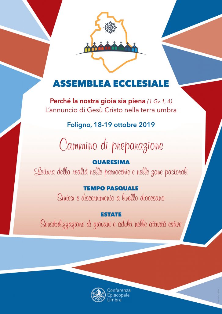 Questa Assemblea si inserisce nel solco dei convegni regionali che le Chiese dell’Umbria più volte hanno celebrato negli anni ’70 e ’80. Il logo scelto per l’Assemblea è semplice e chiaro: il perimetro geografico dell’Umbria a significare il territorio, la sua storia, la sua gente; otto piccole chiese che quasi come un arcobaleno attraversano la cartina dell’Umbria a significare le otto Diocesi che incarnano la bellezza, la fecondità e la santità che vengono dal Vangelo; un rosone, così presente in tante chiese umbre, simbolo di Cristo che il suo Vangelo illumina la comunità cristiana (riunita in assemblea) e attrae gli uomini e le donne (che sono sulla piazza).