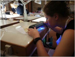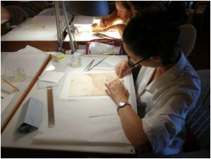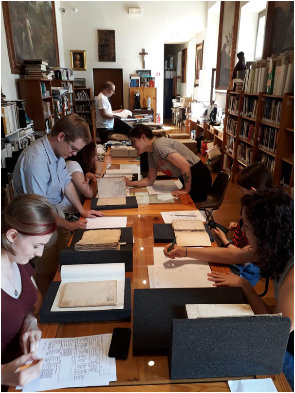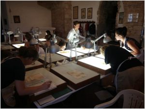 Nel corso di “Conservazione Preventiva negli Archivi Storici” viene insegnato agli studenti come manipolare i preziosi e delicati volumi, valutarne lo stato di conservazione e poi operare, sia direttamente con una delicata rimozione dei dannosi strati di polvere, sia indirettamente costruendo dei contenitori con uno speciale cartone per preservarli dagli agenti esterni e prolungarne così la vita.