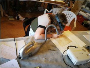 L’attività successiva, che si sta svolgendo in questi giorni a Sangemini, vede impegnati gli studenti del “Restauro della Carta” che lavorano alla messa in sicurezza e restauro dei documenti provenienti dall’archivio, in base a progetti approvati dalla Soprintendenza Archeologia, Belle Arti e Paesaggio dell’Umbria.
