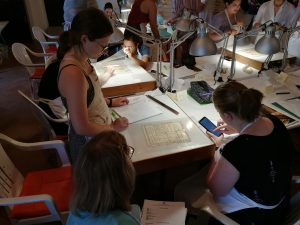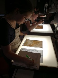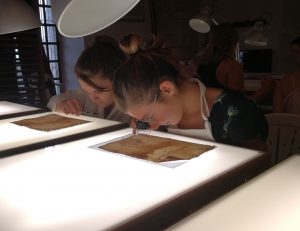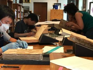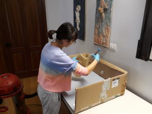 È stato insegnato loro come manipolare i preziosi e delicati volumi, valutarne lo stato di conservazione e poi operare sia direttamente con una delicata riduzione al minimo dei dannosi depositi di polvere e sia indirettamente costruendo dei contenitori con uno speciale cartone che permetterà così di preservarli dagli agenti esterni e prolungarne così la vita.