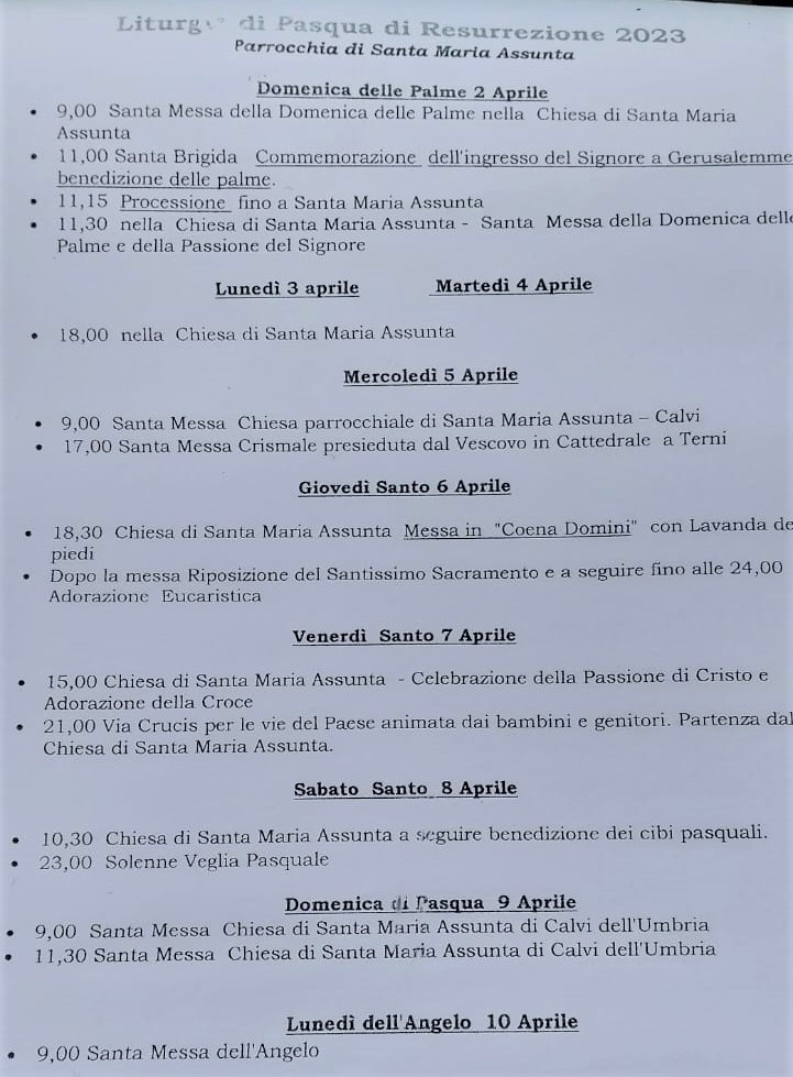 Calvi dell’Umbria – celebrazioni della Settimana Santa