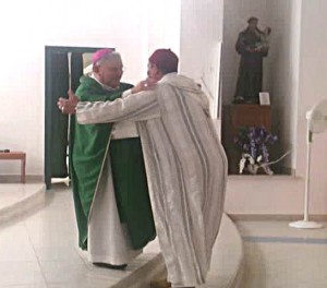 Con un abbraccio fraterno tra il vescovo Piemontese e l’imam Mimoun si è conclusa la preghiera particolare di questa domenica che ha visto insieme nella stessa chiesa cristiani e musulmani.