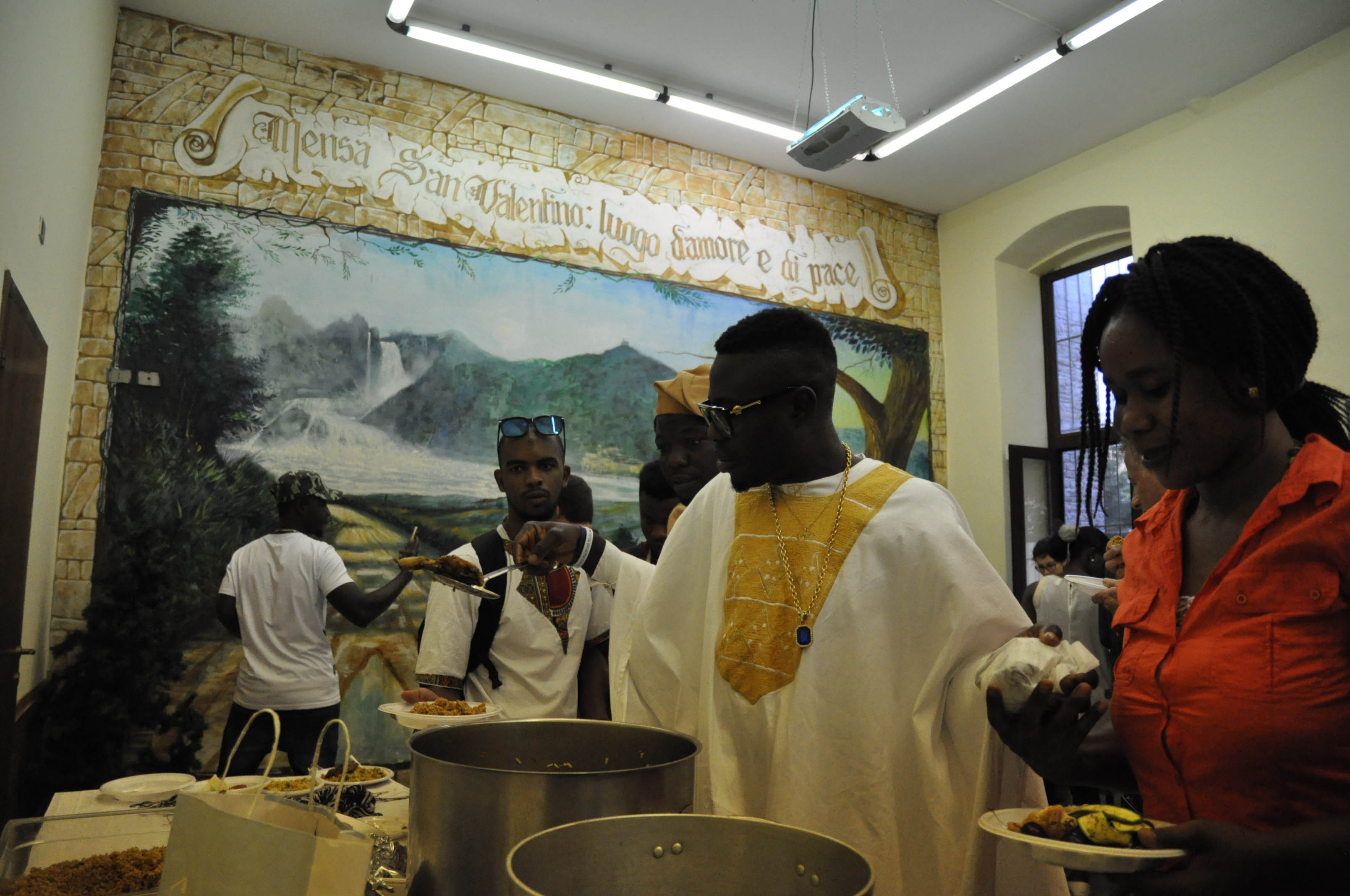Nel piazzale antistante la Mensa San Valentino l’accoglienza da parte del direttore della Caritas Ideale Piantoni, del vescovo Giuseppe Piemontese, del presidente della San Martino Francesco Venturini, degli operatori e volontari. È stato condiviso un pasto multietnico in parte di cibo italiano preparato dai volontari della mensa e in parte tipico dell’Africa preparato da alcuni nigeriani. Tutti insieme intorno ad un pasto, viatico di vita e di unità, un momento di scambio tra chi ha vissuto direttamente il dover migrare e coloro che a vario titolo lavorano su questi temi.