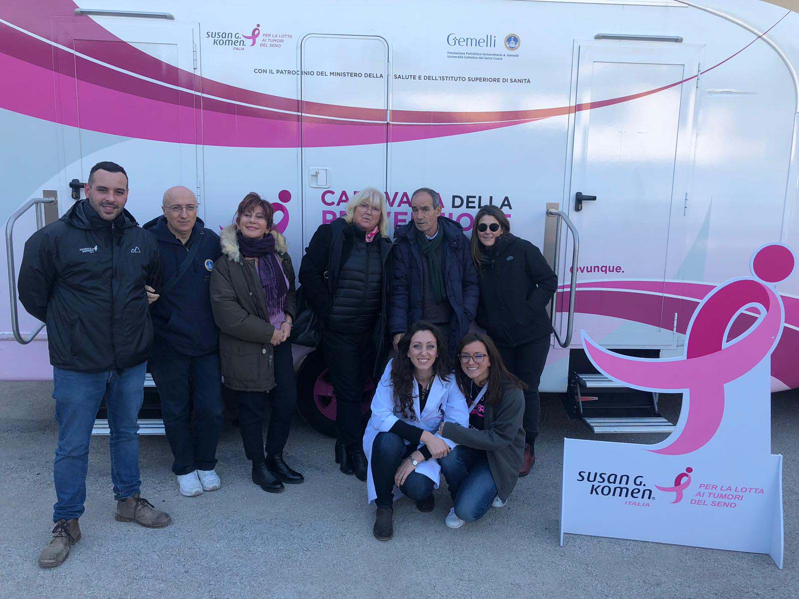 L’evento organizzato dall’associazione Komen, insieme ai professionisti del Policlinico Gemelli, con una carovana medica composta da tre unità di mammografia, ecografia e visite specialistiche, ha permesso di effettuare 130 prestazioni di cui 44 visite senologiche, 29 mammografie, 30 ecografie mammarie, 14 visite ginecologiche, 8 consulenze nutrizionali, 5 shiatsu ed ha evidenziato un generale buono stato di salute con due casi sospetti di tumore.
