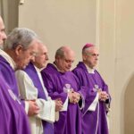 “Il ministero del Vescovo e sempre una testimonianza – ha detto mons. Boccardo -. Testimonianza che viene da lontano e che si incarna nel tempo: è la testimonianza della fede degli apostoli, immutabile e sicura che si cala nella realtà dell’ oggi per illuminarlo e dirigerlo. E noi siano qui questa sera per raccoglierla questa testimonianza del Vescovo Franco, per custodire il suo messaggio, per non disperdere Iungo la via la speranza e la forza che egli ci ha trasmesso, per non rallentare il ritmo vigoroso che egli ha impresso, con ammirevole costanza, al nostro passo di pellegrini. Tocca a noi serbarne la memoria e seguirne l’esempio: nella fede indomita, nella instancabile operosità, nell’amore discreto, silenzioso e fedele, che ha segnato come una costante tutta la sua lunga vita. Ed egli continuerà ad essere per molti di noi, pastore e padre, e per questa chiesa di Terni-Narni-Amelia segno non effimero né illusorio della presenza misteriosa del suo Signore”.