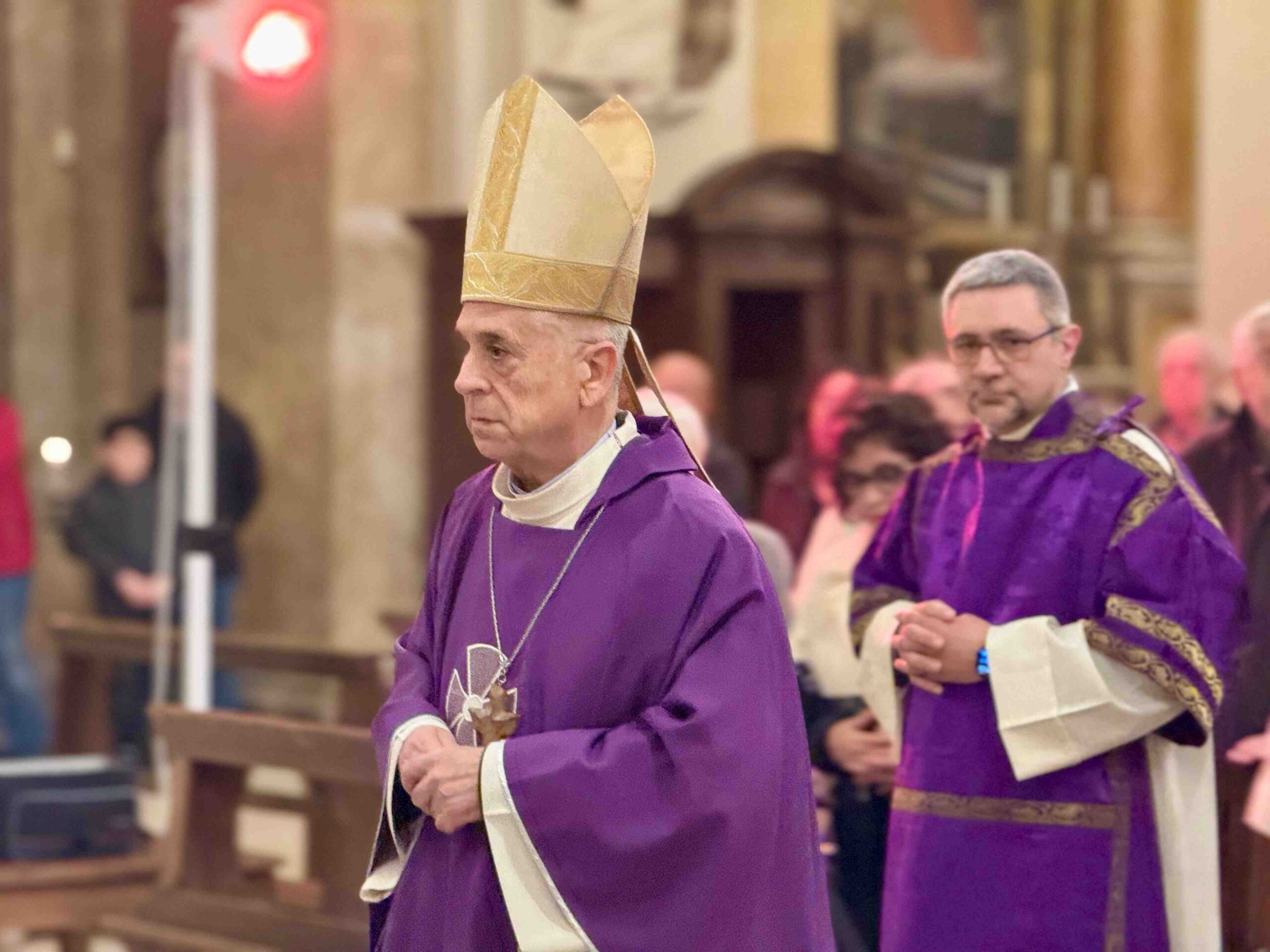 “Il ministero del Vescovo e sempre una testimonianza – ha detto mons. Boccardo -. Testimonianza che viene da lontano e che si incarna nel tempo: è la testimonianza della fede degli apostoli, immutabile e sicura che si cala nella realtà dell’ oggi per illuminarlo e dirigerlo. E noi siano qui questa sera per raccoglierla questa testimonianza del Vescovo Franco, per custodire il suo messaggio, per non disperdere Iungo la via la speranza e la forza che egli ci ha trasmesso, per non rallentare il ritmo vigoroso che egli ha impresso, con ammirevole costanza, al nostro passo di pellegrini. Tocca a noi serbarne la memoria e seguirne l’esempio: nella fede indomita, nella instancabile operosità, nell’amore discreto, silenzioso e fedele, che ha segnato come una costante tutta la sua lunga vita. Ed egli continuerà ad essere per molti di noi, pastore e padre, e per questa chiesa di Terni-Narni-Amelia segno non effimero né illusorio della presenza misteriosa del suo Signore”.
