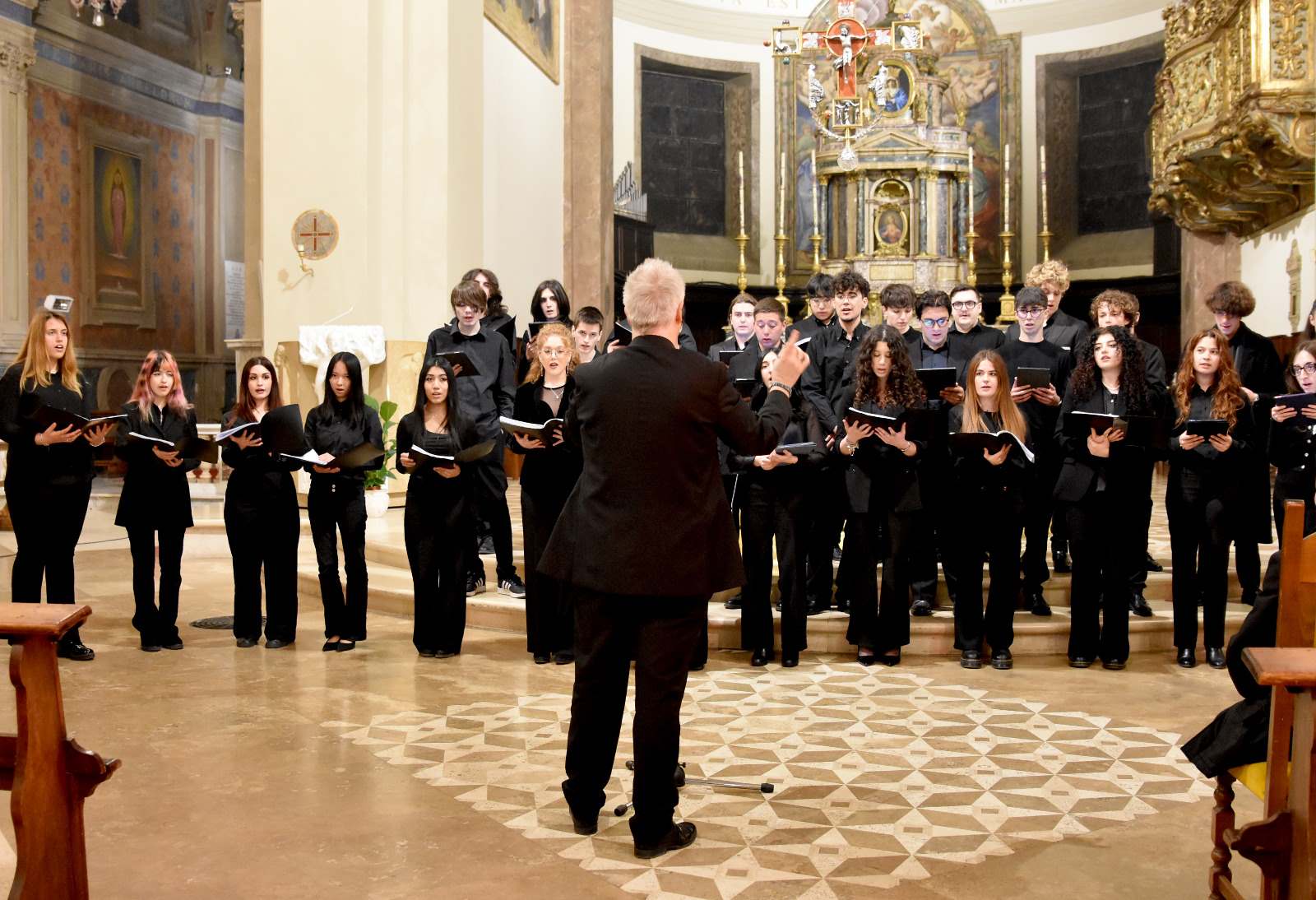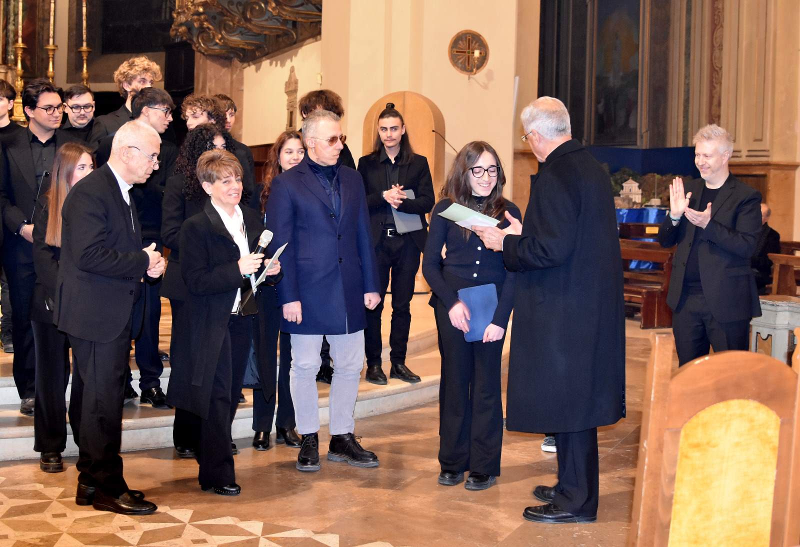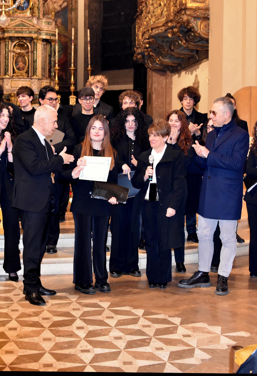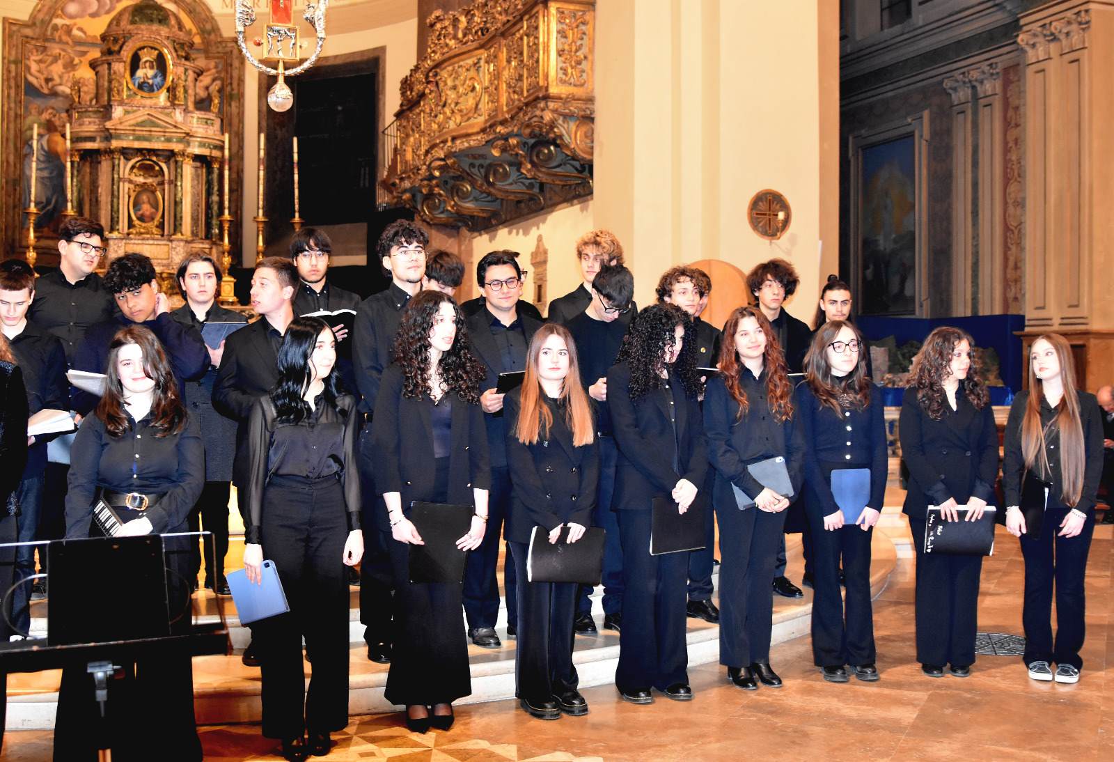 Gli studenti del Liceo Musicale, diretti dal prof. Marco Venturi e accompagnati al piano dalla prof.ssa Irene Franceschini,  hanno incantato il pubblico presente con un esecuzione vibrante ed emozionante di An Irish Blessing trad. irlandese, arr. J. Moore, Ave Maria di B. De Marzi, A Song for Peace di D. Mattix e J. Greene, Ubi Caritas di O. Gjeilo, Dolce Sentire di R. Ortolani, arr. M. Venturi, Total Praise di R. Smallwood.