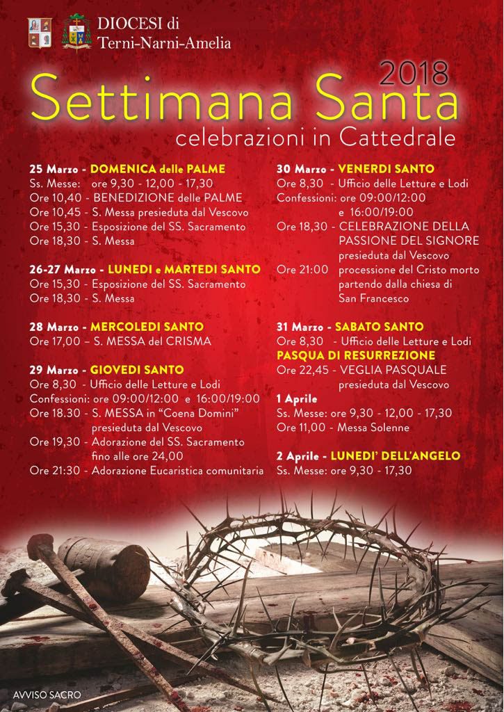 – Domenica 1 aprile il vescovo presiederà la celebrazione della Pasqua di Resurrezione alle ore 11 nella Concattedrale di Narni e alle ore 18 nella Concattedrale di Amelia.