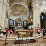 In una cattedrale gremita di fedeli è stata celebrata domenica 15 febbraio la festa diocesana di San Valentino, con il solenne pontificale presieduto dal vescovo Francesco Antonio Soddu, In una cattedrale gremita di fedeli è stata celebrata domenica 15 febbraio la festa diocesana di San Valentino, con il solenne pontificale presieduto dal vescovo Francesco Antonio Soddu, concelebrato da mons. Salvatore Ferdinandi, vicario generale della Diocesi, da padre Josline Peediakkel parroco di San Valentino, dai i vicari foranei ed episcopali, il clero diocesano. Alla celebrazione hanno partecipato il prefetto di Terni Antonietta Orlando, la presidente della Regione Umbria Stefania Proietti, Francesco Maria Ferranti vicepresidente della Provincia di Terni, il Procuratore della Repubblica di Terni Antonio Laronga, la presidente del Consiglio Comunale di Terni Sara Francescangeli, assessori e consiglieri della Regione Umbria, consiglieri del Comune di Terni, sindaci dei Comuni del comprensorio diocesano, autorità militari provinciali e regionali, cavalieri e dame dell’Ordine Equestre del Santo Sepolcro di Gerusalemme, dell’ordine Constantiniano, rappresentanti del mondo del lavoro e delle associazioni di categoria, della scuola, delle associazioni, gruppi giovanili e Scout d’Europa, Terni 9 e Terni 2, e movimenti della Diocesi.