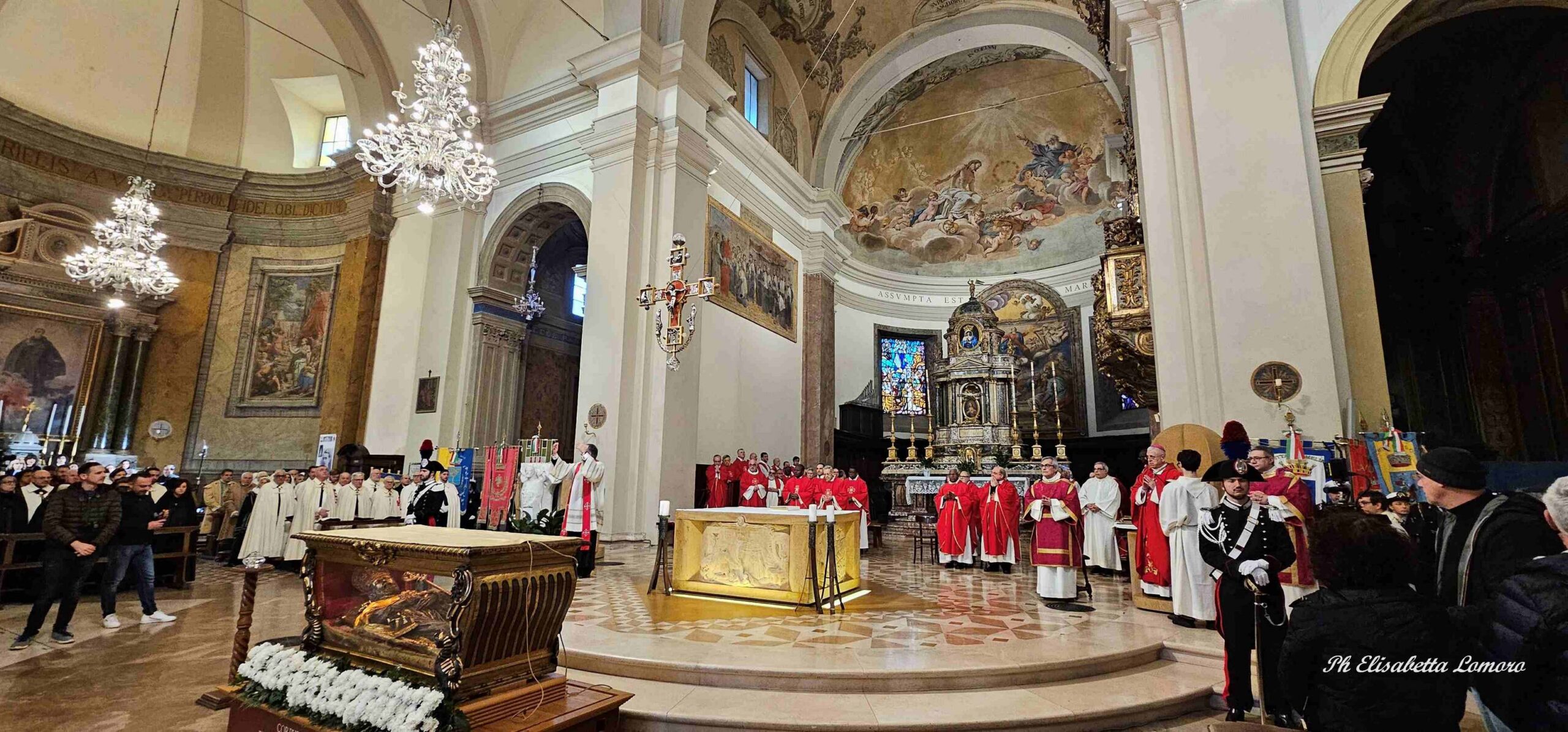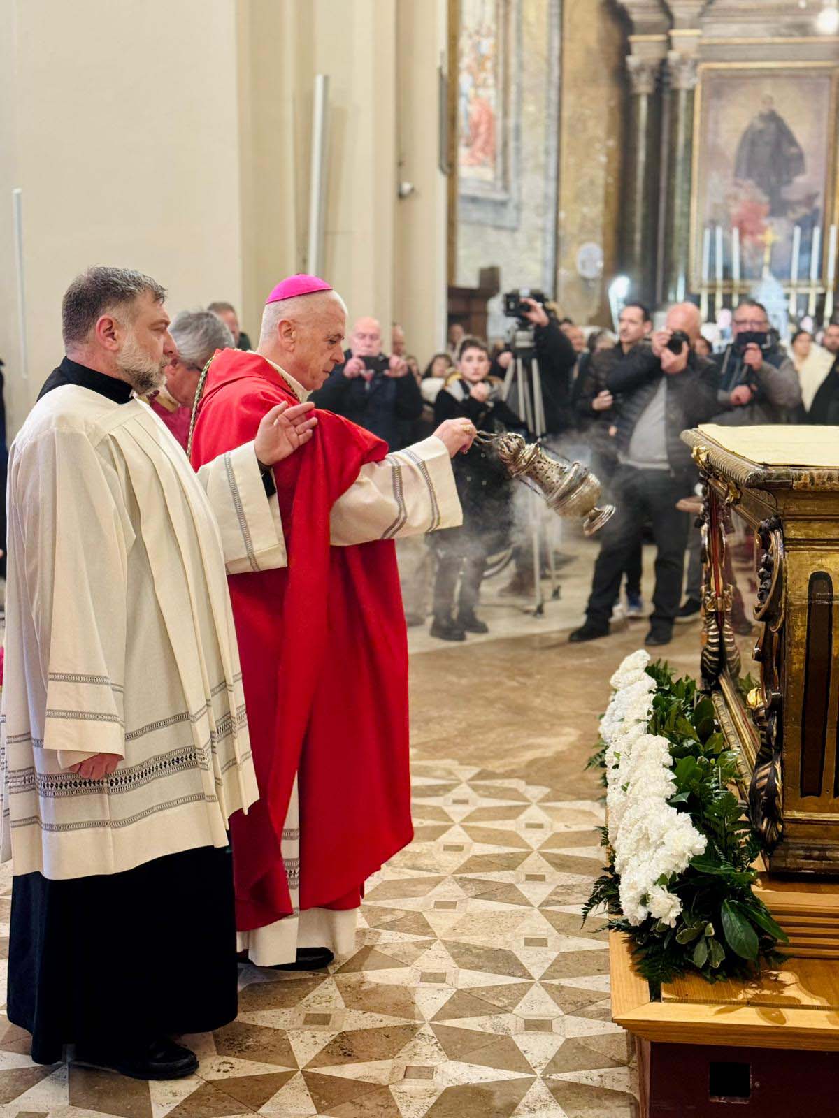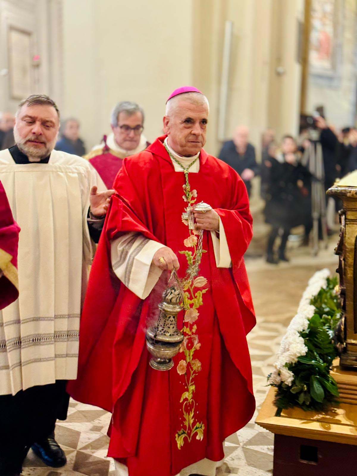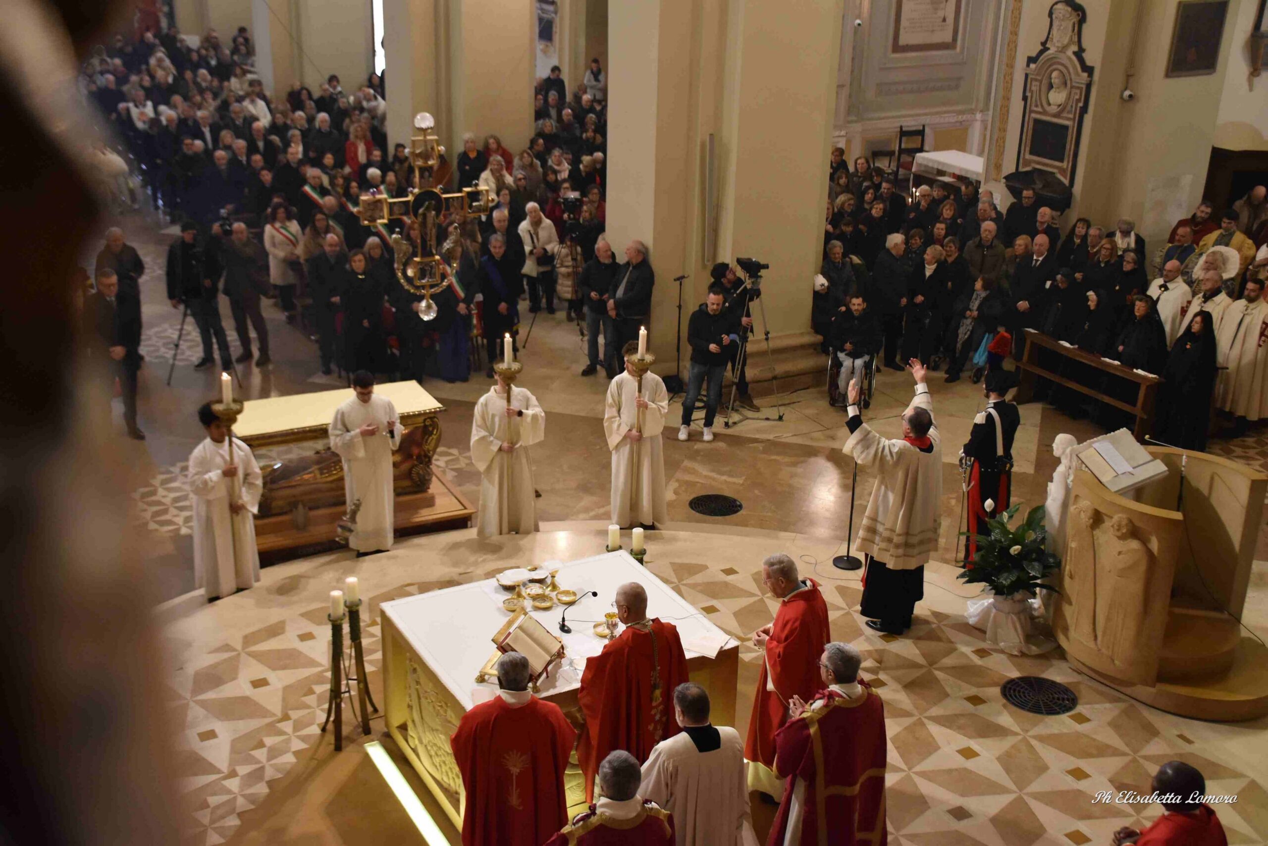 In una cattedrale gremita di fedeli è stata celebrata domenica 15 febbraio la festa diocesana di San Valentino, con il solenne pontificale presieduto dal vescovo Francesco Antonio Soddu, In una cattedrale gremita di fedeli è stata celebrata domenica 15 febbraio la festa diocesana di San Valentino, con il solenne pontificale presieduto dal vescovo Francesco Antonio Soddu, concelebrato da mons. Salvatore Ferdinandi, vicario generale della Diocesi, da padre Josline Peediakkel parroco di San Valentino, dai i vicari foranei ed episcopali, il clero diocesano. Alla celebrazione hanno partecipato il prefetto di Terni Antonietta Orlando, la presidente della Regione Umbria Stefania Proietti, Francesco Maria Ferranti vicepresidente della Provincia di Terni, il Procuratore della Repubblica di Terni Antonio Laronga, la presidente del Consiglio Comunale di Terni Sara Francescangeli, assessori e consiglieri della Regione Umbria, consiglieri del Comune di Terni, sindaci dei Comuni del comprensorio diocesano, autorità militari provinciali e regionali, cavalieri e dame dell’Ordine Equestre del Santo Sepolcro di Gerusalemme, dell’ordine Constantiniano, rappresentanti del mondo del lavoro e delle associazioni di categoria, della scuola, delle associazioni, gruppi giovanili e Scout d’Europa, Terni 9 e Terni 2, e movimenti della Diocesi.