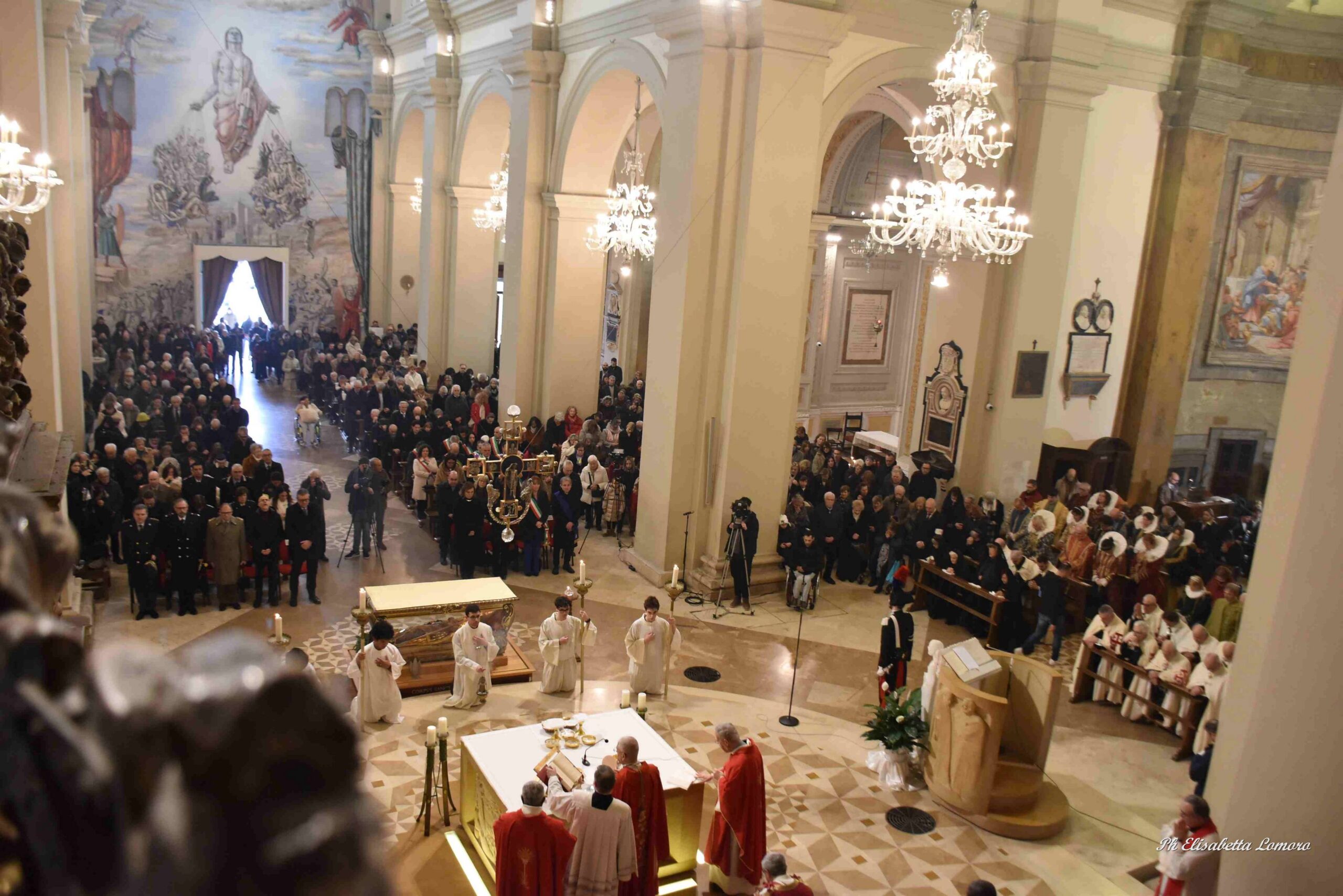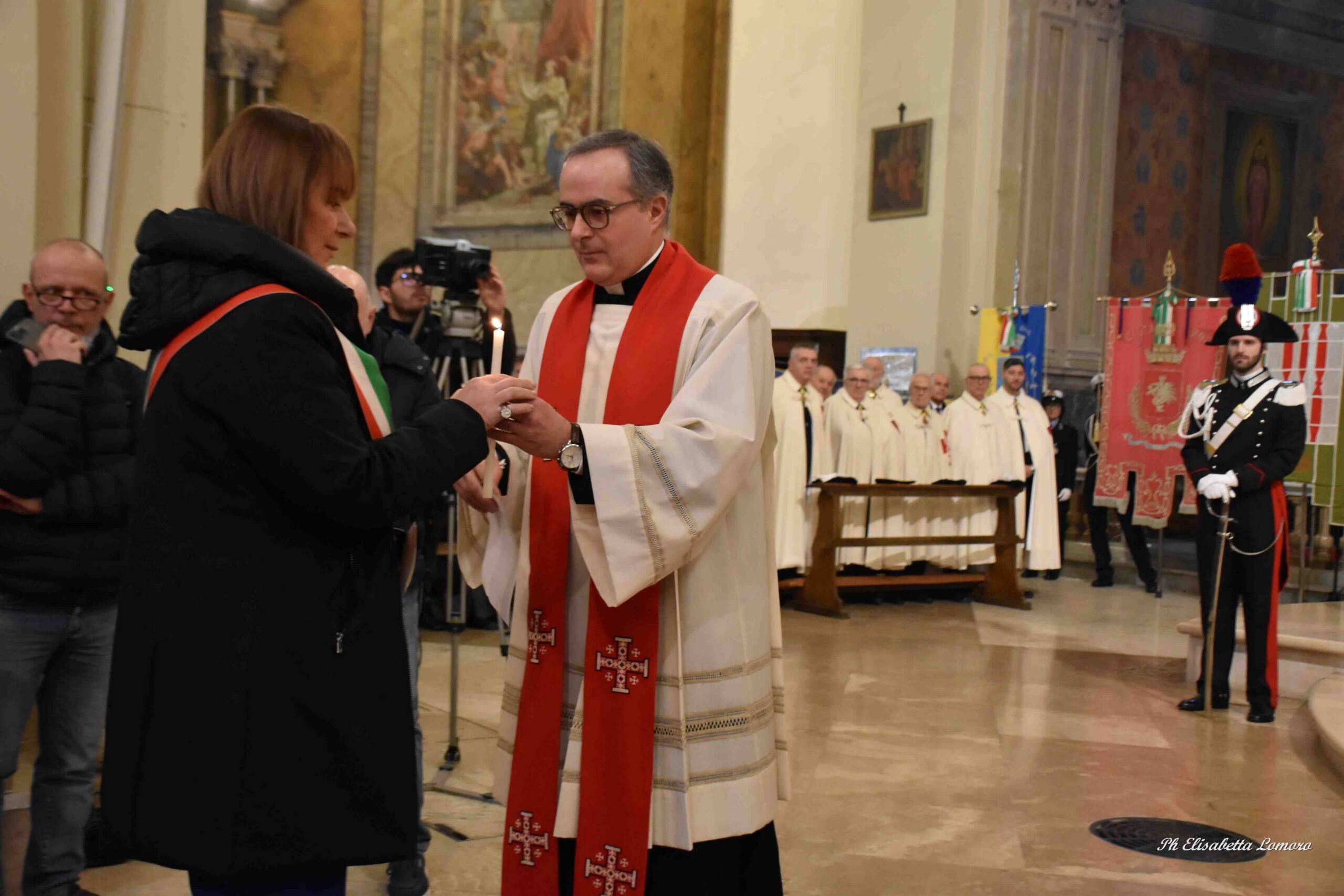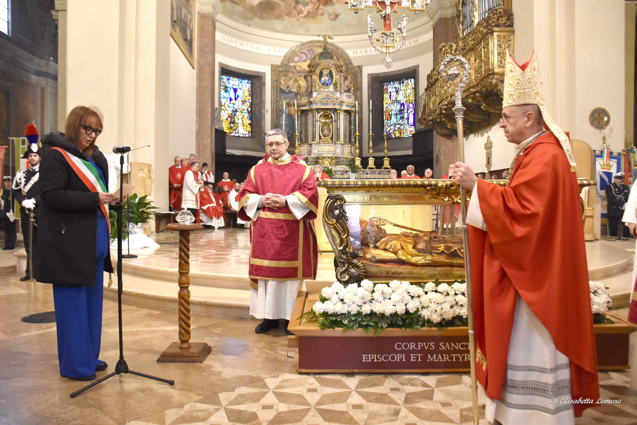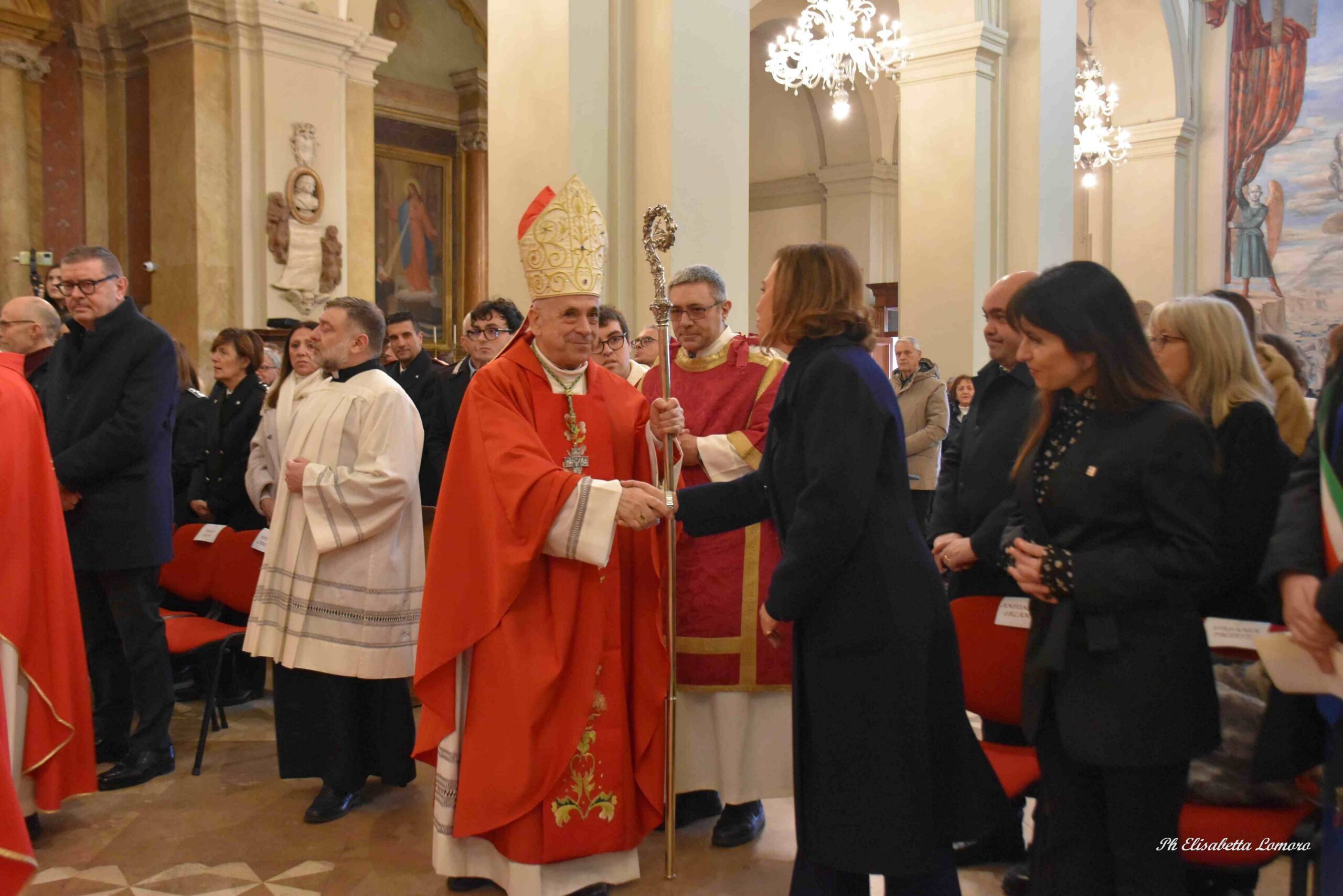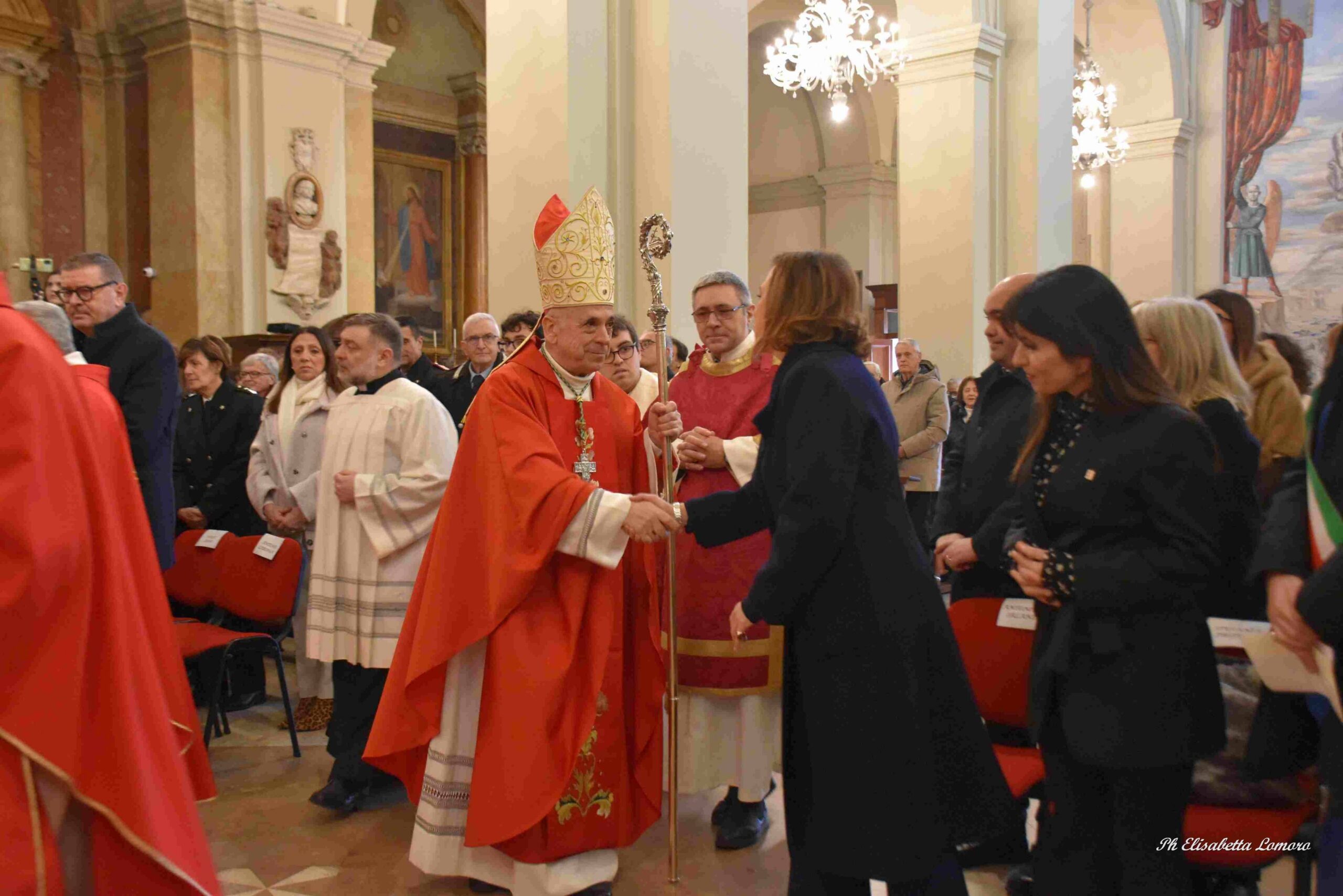Durante il pontificale è stata accesa la lampada votiva e pronunciato l’atto di affidamento della città al Santo Patrono da parte della presidente del Consiglio Comunale Sara Francescangeli, segno di devozione e della disponibilità degli amministratori pubblici ad essere attenti ai bisogni della comunità e a promuovere con onestà e saggezza ciò che giova al bene comune.