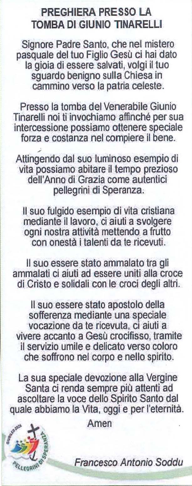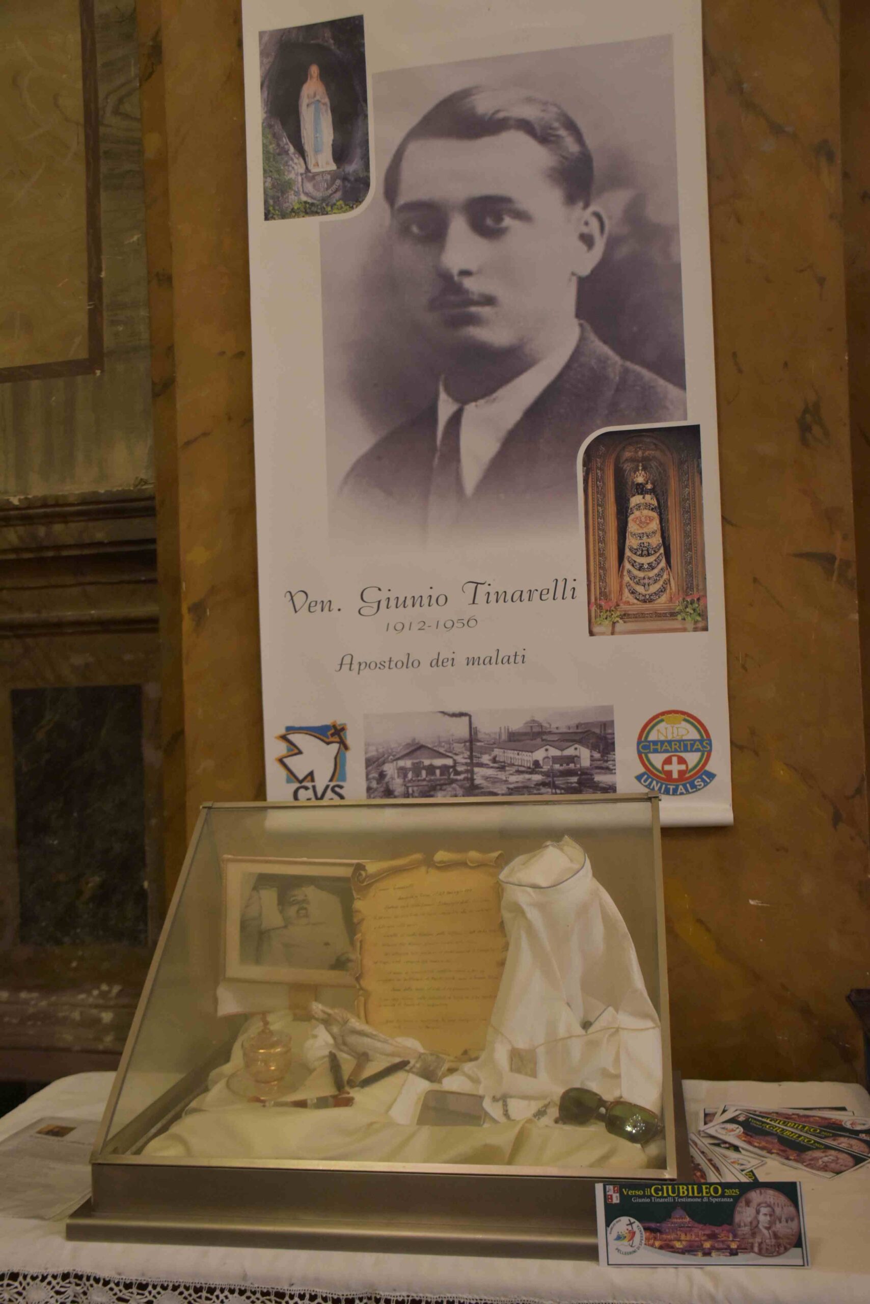 Il 14 gennaio 1956 Giunio Tinarelli moriva nel suo letto nel quale era immobilizzato da oltre vent’anni per una grave malattia. Aveva appena 44 anni e una fede incrollabile, testimoniata con forza nel dolore. Il suo è stato un esempio immenso di vocazione alla sofferenza. Il comitato venerabile Giunio Tinarelli, l’Unitalsi e il Centro Volontari della Sofferenza, la Consulta per la pastorale della Salute celebrano il sessantanovesimo anniversario della morte, domenica 12 gennaio 2025 alle ore 11 nella cattedrale di Terni, dove si trova la tomba del venerabile Giunio Tinarelli, con la solenne messa presieduta dal vescovo Francesco Antonio Soddu e concelebrata da padre Angelo Gatto direttore della Pastorale della Salute della diocesi e da don Alessandro Rossini parroco della Catterdale di Terni. Nell’anno del Giubileo, Giunio Tinarelli è uno dei testimoni di speranza della diocesi, “attingendo dal suo luminoso esempio per abitare il tempo di grazia dell’Anno Santo come autentici pellegrini di speranza” si legge nella preghiera sulla tomba di Tinarelli e composta dal vescovo Soddu.