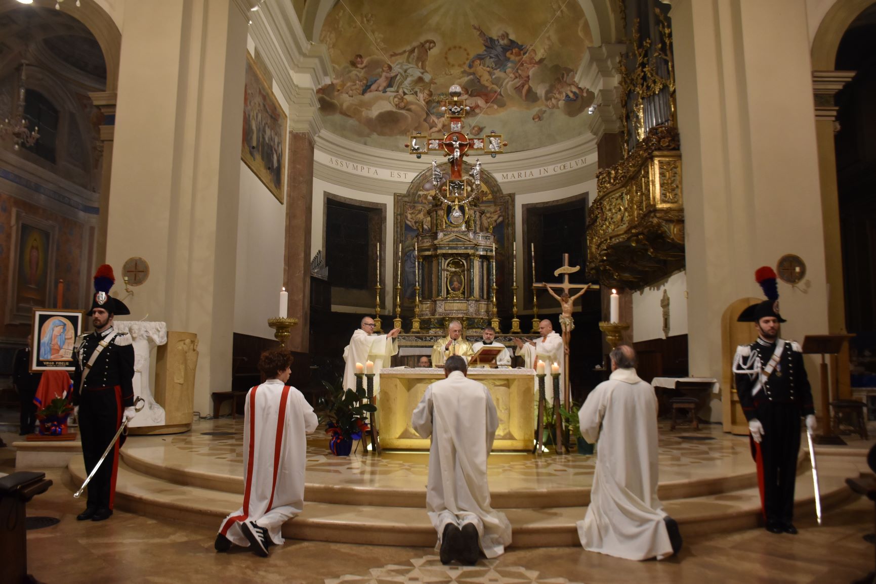 La celebrazione della Virgo Fidelis, patrona dell’Arma dei Carabinieri, proclamata tale nel 1949 da papa Pio XI, è stata presieduta nella Cattedrale di Terni dal vescovo Francesco Soddu, il 21 novembre, alla presenza del colonnello Antonio De Rosa, comandante provinciale dei Carabinieri di Terni, degli altri ufficiali e rappresentanti dell’Arma locale, dell’associazione Carabinieri in congedo, del prefetto di Terni Antonietta Orlando, del questore Michele Abenante, della presidente del consiglio comunale di Terni Sara Francescangeli, dei sindaci dei Comuni della provincia e delle altre autorità militari e civili. La messa è stata concelebrata dal don Luciano Afloarei e don Marco Castellani, e animata dal Coro diocesano diretto da don Sergio Rossini.