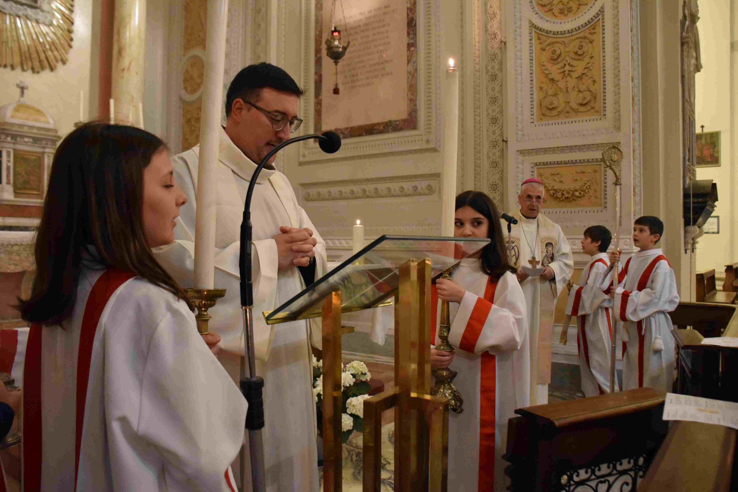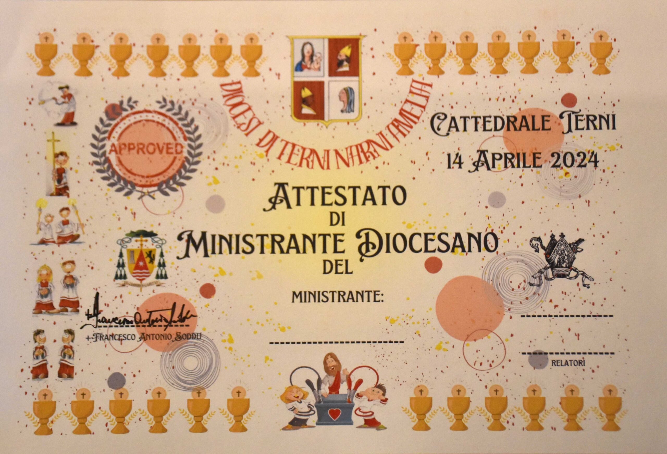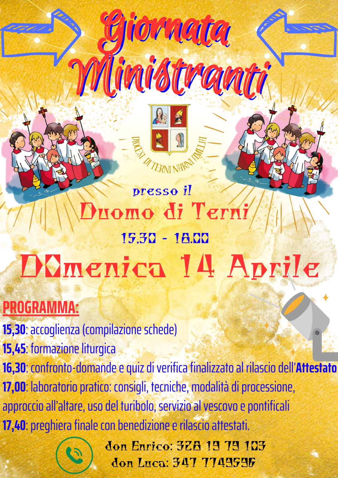 Domenica 14 aprile 2024 in cattedrale a Terni si è tenuto l’incontro di formazione dei ministranti delle varie parrocchie della diocesi. Un pomeriggio in amicizia per conoscersi e pregare insieme, per formarsi e confrontarsi sulla liturgia con la consegna di un attestato di partecipazione. Protagonisti della giornata i ragazzi e ragazze impegnati nelle parrocchie nel servizio all’altare, un servizio liturgico che rappresenta l’opportunità per entrare a contatto, più da vicino, con la vita dei sacerdoti, ma soprattutto il ministrante vive sull’altare e vicino all’altare e ha una possibilità straordinaria di stare “accanto a Gesù”, che sull’altare si fa vicino attraverso il dono dell’Eucarestia.