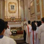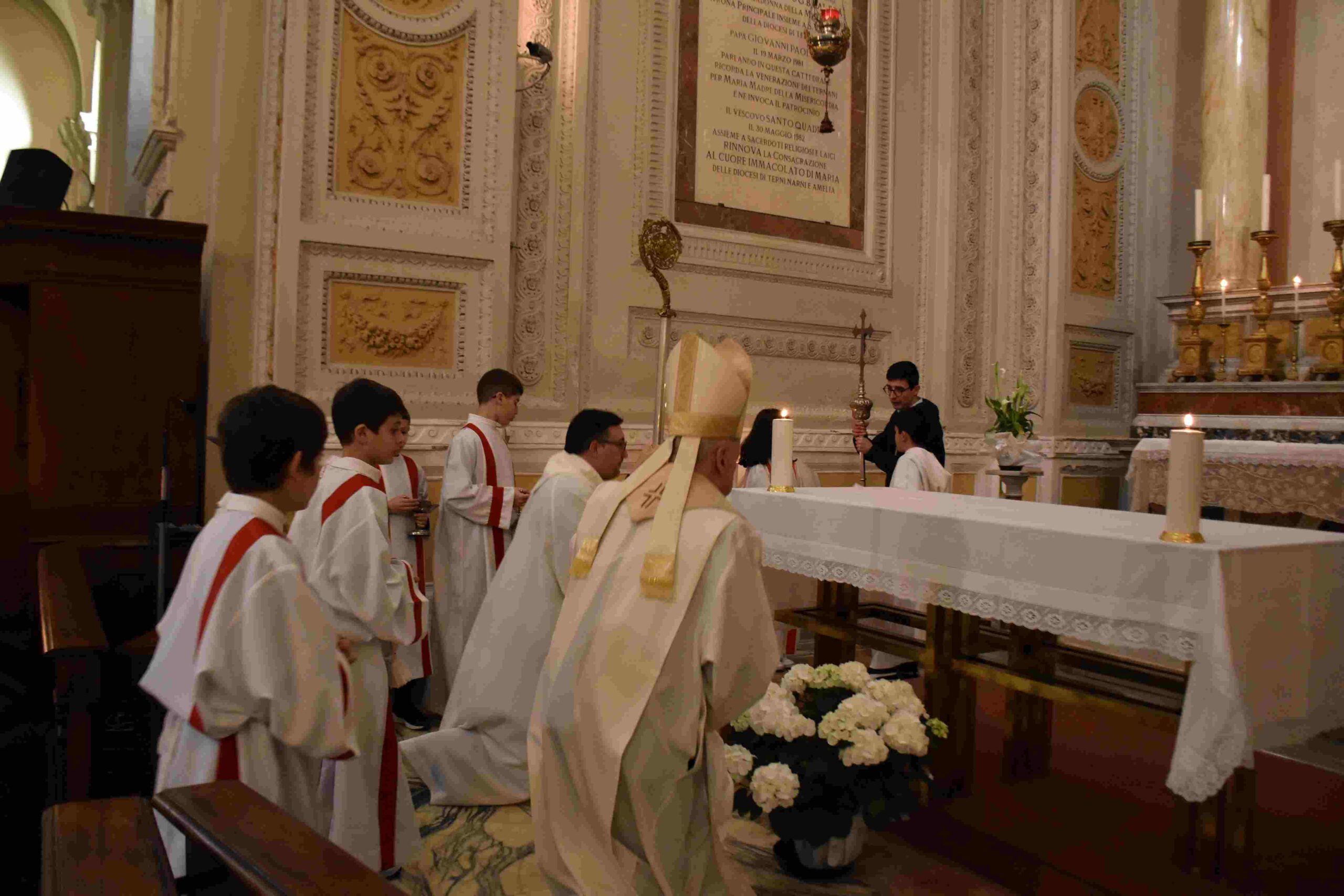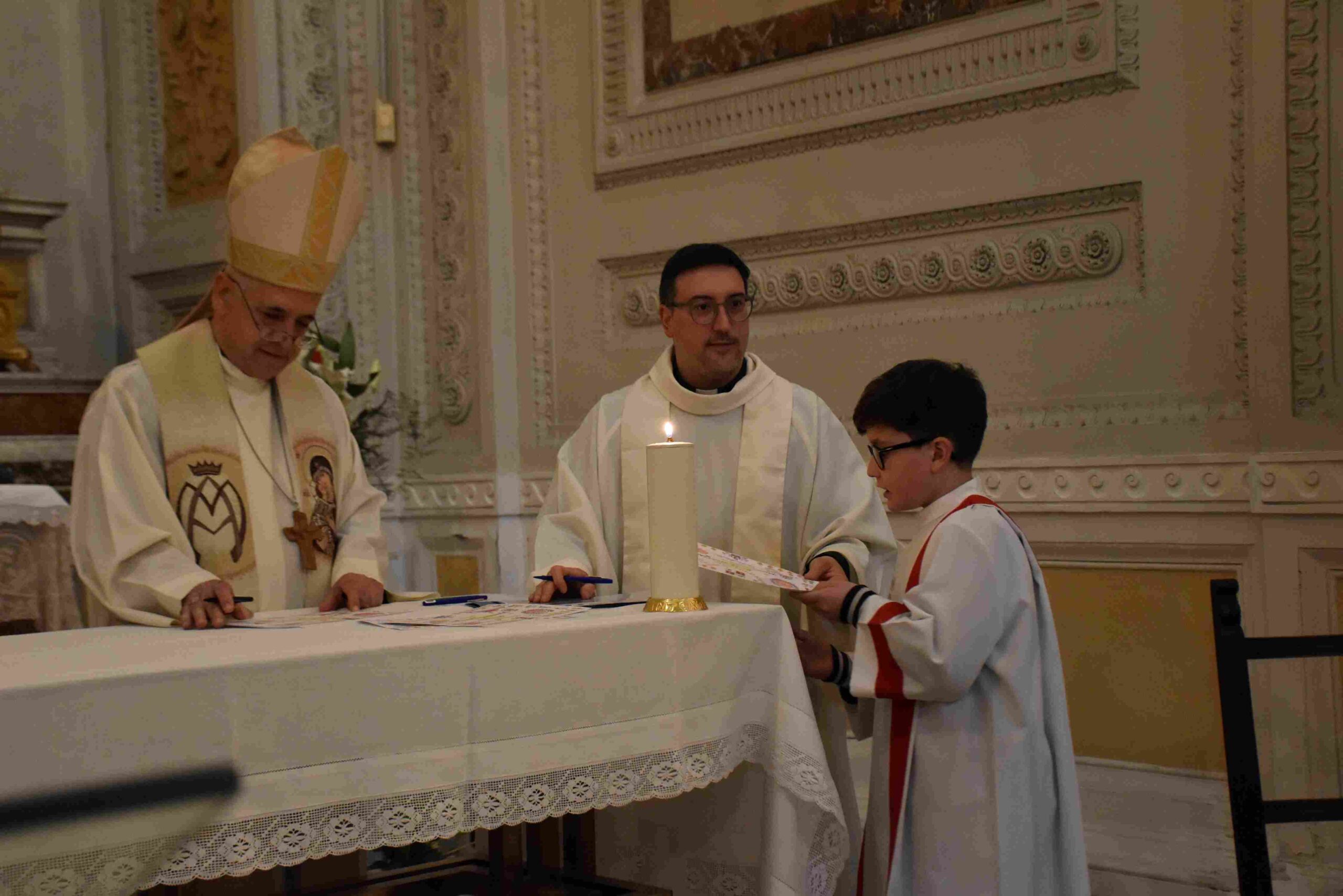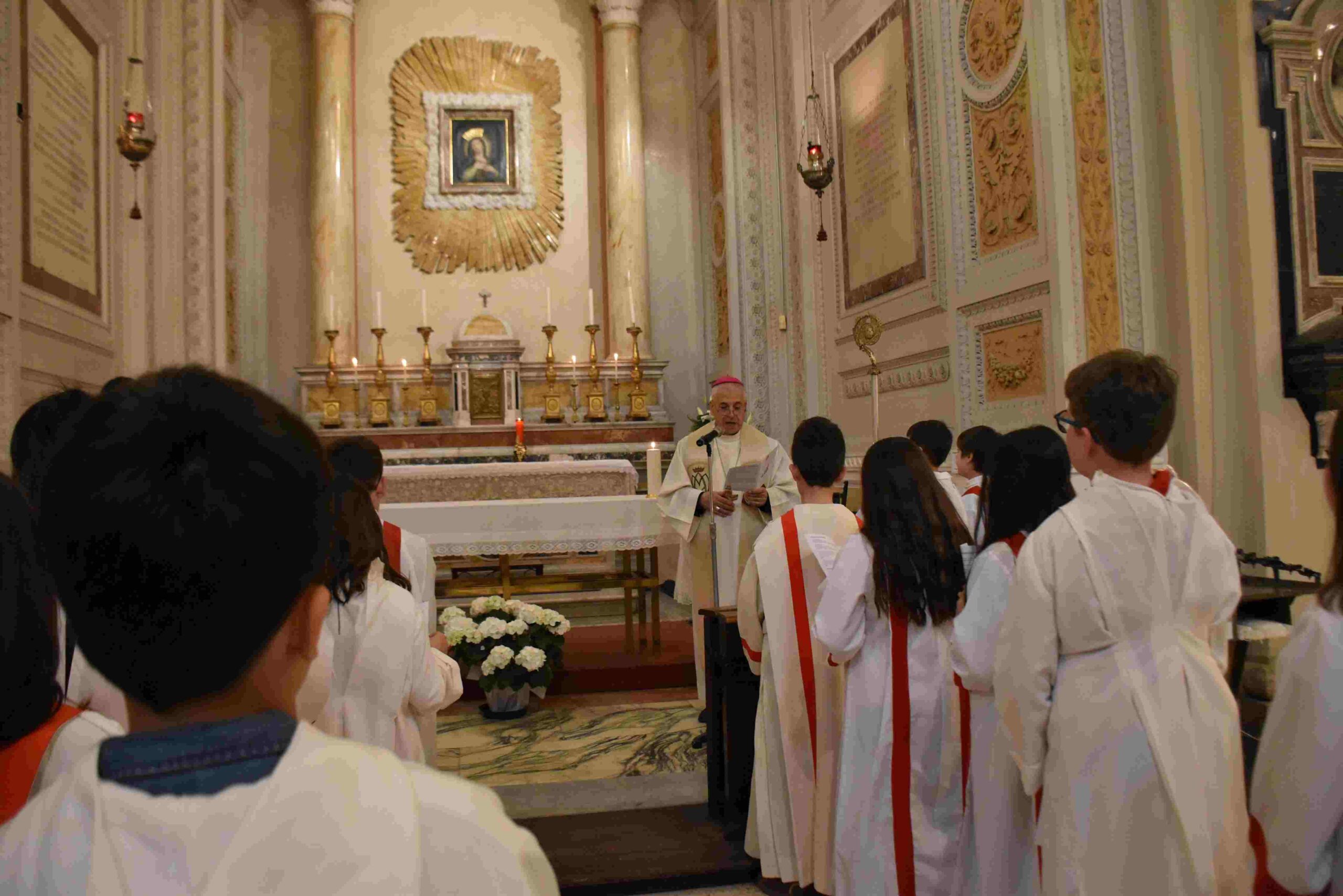 Don Enrico D’Urso, don Thiago e i seminaristi Matteo Bergonzini e Mariano De Persio hanno spiegato ai ragazzi i servizi che svolgono i ministranti, gli oggetti sacri, i luoghi delle liturgie e le persone che celebrano in particolare nelle liturgie del vescovo. Al termine c’è stata la preghiera con il vescovo Soddu nella cappella della Madonna della Misericordia, con tutti i ministranti che hanno prestato i vari servizi e ai quali è stato cpnferito il mandato e consegnato l’attestato di partecipazione.