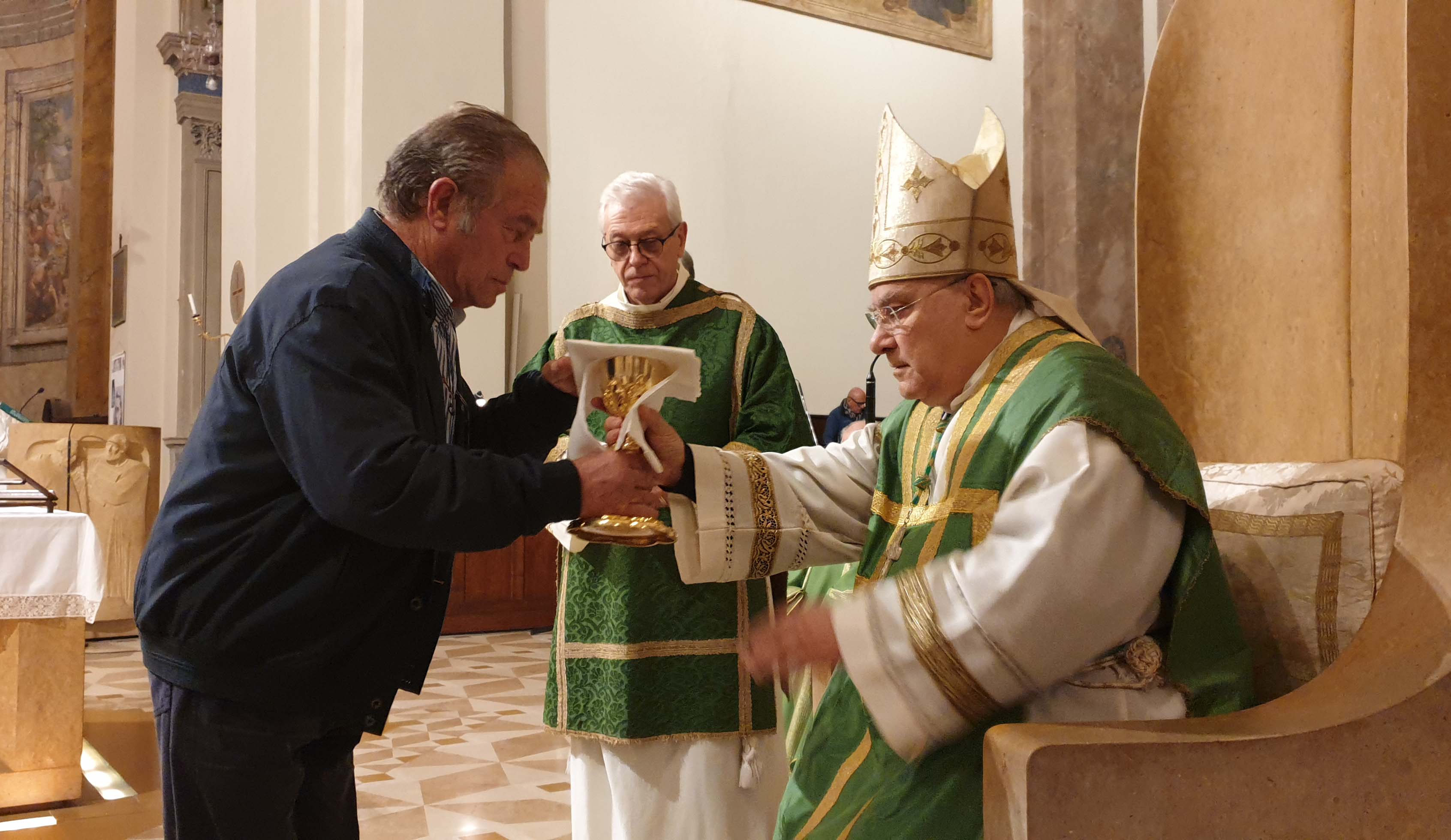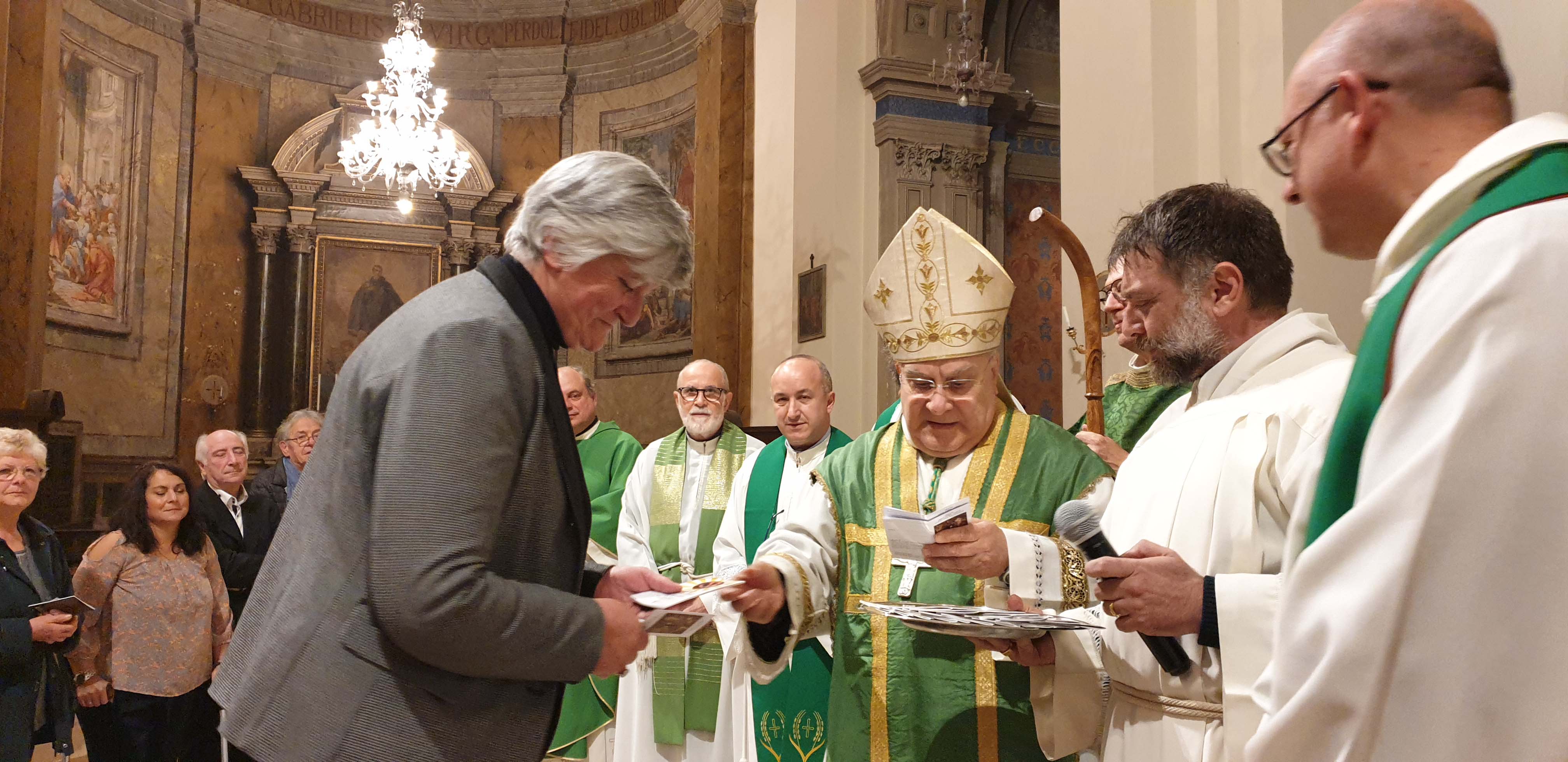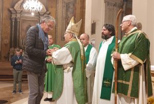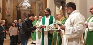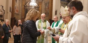 Nella celebrazione di domenica 3 novembre, il vescovo Giuseppe Piemontese ha conferito il ministero di ministro straordinario della Santa Comunione a 15 nuovi ministri della parrocchia del Cuore Immacolato di Maria a Campomicciolo, di San Francesco di Amelia, di Santa Maria della Misericordia di Terni, di Santi Vincenzo e Anastasio a Finocchieto, Santi Giovenale e Cassio di Narni, di San Pietro a Terni, della Cattedrale di Terni, di San Giuseppe lavoratore, di Sangemini, Sant’Andrea a Marmore, San Francesco Terni.