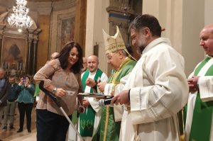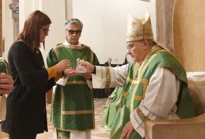 Il vescovo ha ringraziato per “per aver risposto di sì al Signore e alla chiesa e per il bene che avrete modo di fare nella chiesa e nel mondo” ed ha poi ricordato l’importanza del servizio ai malati per il conforto e la consolazione degli inferni, degli ammalati, di coloro che sono impossibilitati a partecipare all’assemblea liturgica nel giorno del Signore “è un mistero per il quale, al termine della messa voi possiate partire, rappresentando la comunità, e portare conforto e consolazione, cioè Gesù, agli ammalati e agli anziani, a coloro che vorrebbero essere presenti nell’assemblea liturgica, ma non possono a motivo di impedimenti soprattutto fisici, per l’età, per la malattia. E’ un ministero della carità, per portare a tutti la lieta notizia che Gesù ha il desiderio di vedere il volto di tutti”.