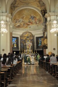Con la celebrazione di domenica 26 settembre presieduta dal vescovo Giuseppe Piemontese nella Cattedrale di Terni si è conclusa la festa del Preziosissimo Sangue, legata alla reliquia custodita nell’altare maggiore della chiesa madre della diocesi e donata nel 1650 dal cardinale Francesco Angelo Rapaccioli allora vescovo di Terni. E’ una devozione a Gesù che ha versato il suo sangue per la redenzione dell’umanità e che più di ogni altra suggerisce lo spirito di sacrificio, incoraggia a portare la croce e ad affidarsi alla volontà di Dio.