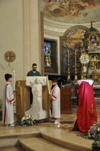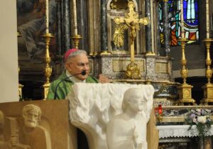 “Dobbiamo riflettere sulle parole del Vangelo – ha detto il vescovo perché non possiamo essere discepoli all’acqua di rose. Sono indicazioni che Gesù ci dà se vogliamo vivere in pienezza come lui. Il cristiano è colui che ha scelto di unire la sua vita a quella di Cristo. Questa comunità custodisce la reliquia del Preziosissimo Sangue e fa memoria del dono che Cristo ha fatto a tutta l’umanità, di tutta la sua vita contenuta nel suo sangue versato. La comunità deve incarnare questo dono grande di Gesù per l’umanità. Dall’alto della croce quando dal suo corpo è fuoriuscita l’ultima goccia di sangue Gesù ha aggregato l’umanità, l’ha riunita, l’ha trasformata, l’ha salvata. Dall’alto della croce ha orientato gli uomini al Padre e abbracciato oriente e occidente. Gesù ci ha consegnato il messaggio di unità, di accoglienza di ogni uomo, di ricerca del bene, di servizio di amore per la comunità e per il mondo intero”.
