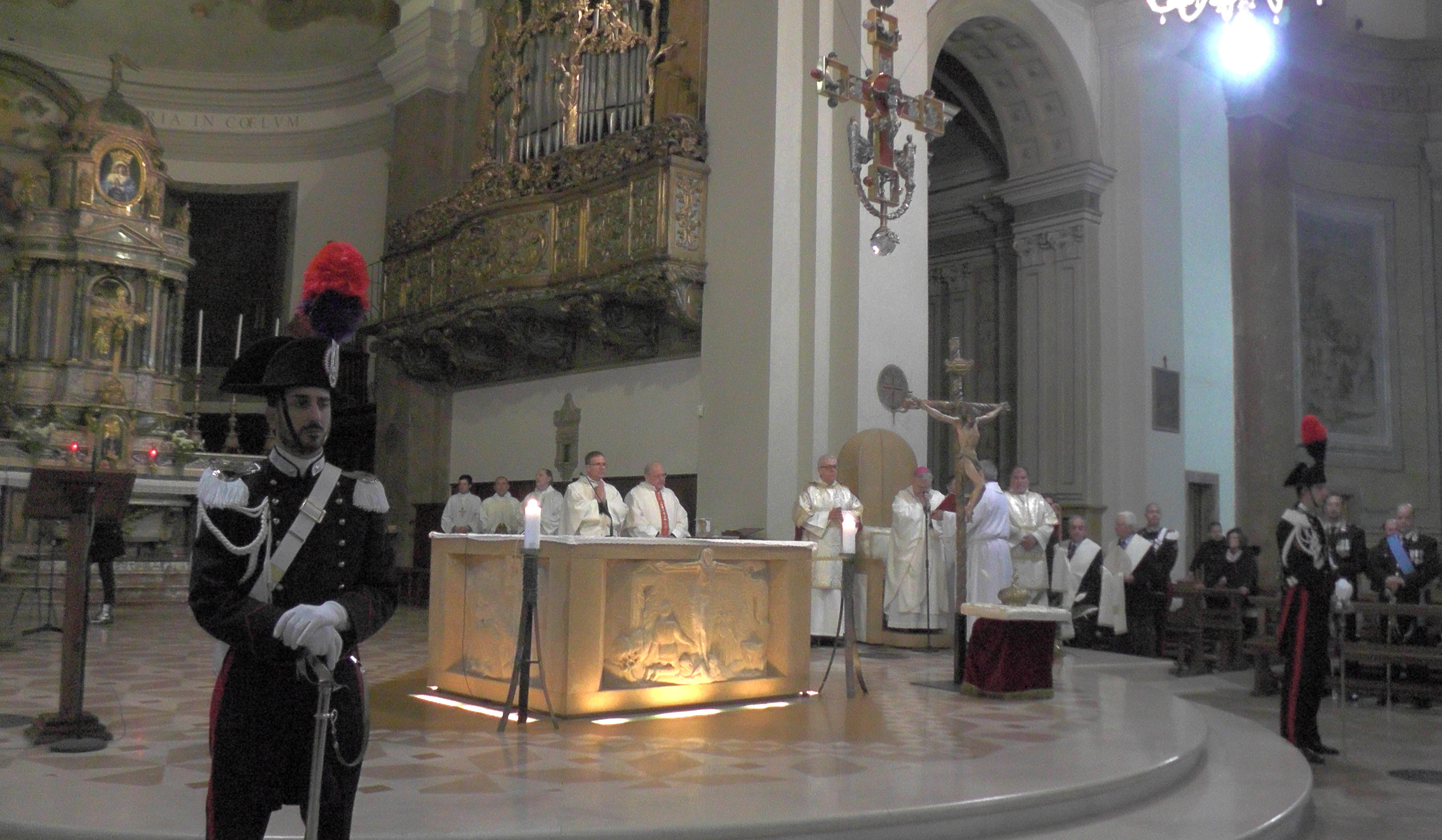 La celebrazione della patrona dell’Arma dei Carabinieri, proclamata tale nel 1949 da papa Pio XI, è stata presieduta nella Cattedrale di Terni dal vescovo Giuseppe Piemontese, concelebrata dal cappellano militare don Mauro Medaglini e dal parroco don Carlo Romani, alla presenza delle autorità civili e militari della provincia, del vicepresidente della Regione Fabio Paparelli, del prefetto vicario Andrea Gambassi, del questore Carmine Belfiore, del comandante provinciale dei Carabinieri di Terni colonnello Giovanni Capasso, dei militari della compagnia Carabinieri di Terni e delle rappresentanze di carabinieri in congedo.