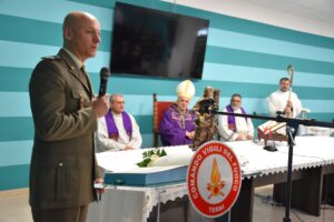 Al termine della celebrazione è stata recitata la preghiera a santa Barbara ed è stata consegnata al vescovo Soddu una targa ricordo da parte del generale Nasca e del comandante Nicolucci.
