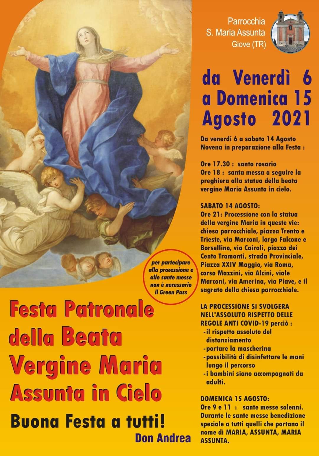 A Giove dal 6 al 14 agosto novena in preparazione alla festa alle ore 17.30 santo rosario, ore18 santa messa a seguire la preghiera alla statua della beata vergine Maria Assunta in cielo.