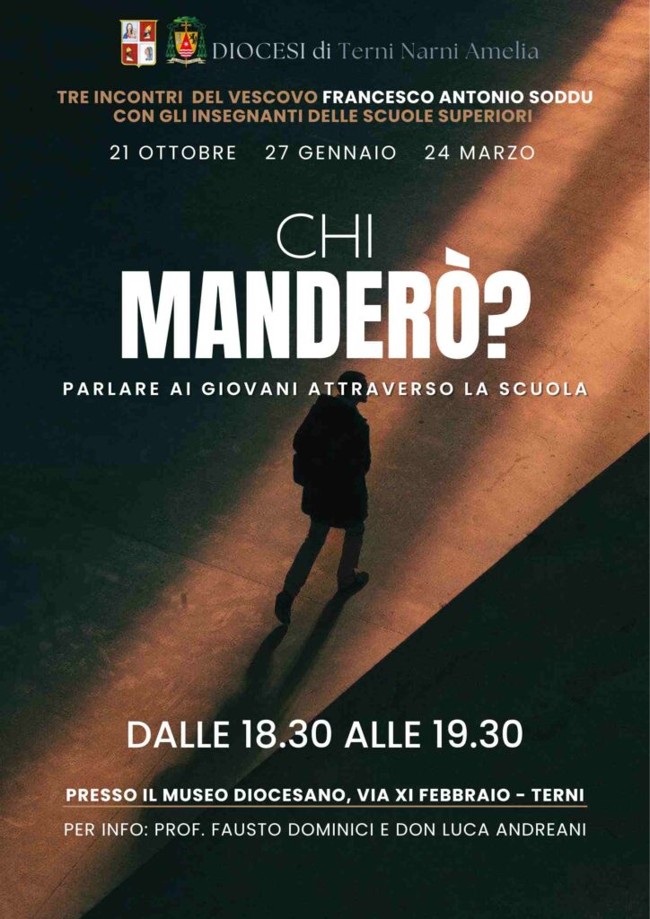 Secondo incontro il 27 gennaio dalle 18.30 alle 19.30 del progetto “Chi manderò, parlare ai giovani attraverso la scuola”, dialogo degli insegnanti delle scuole superiori con il Vescovo Soddu, che hanno avuto inizio il 21 ottobre 2024 nella sala conferenze del Museo diocesano di Terni, promossi dalla Diocesi e dal servizio di Pastrorale Giovanile diocesano, diretto dal don Luca Andreani.