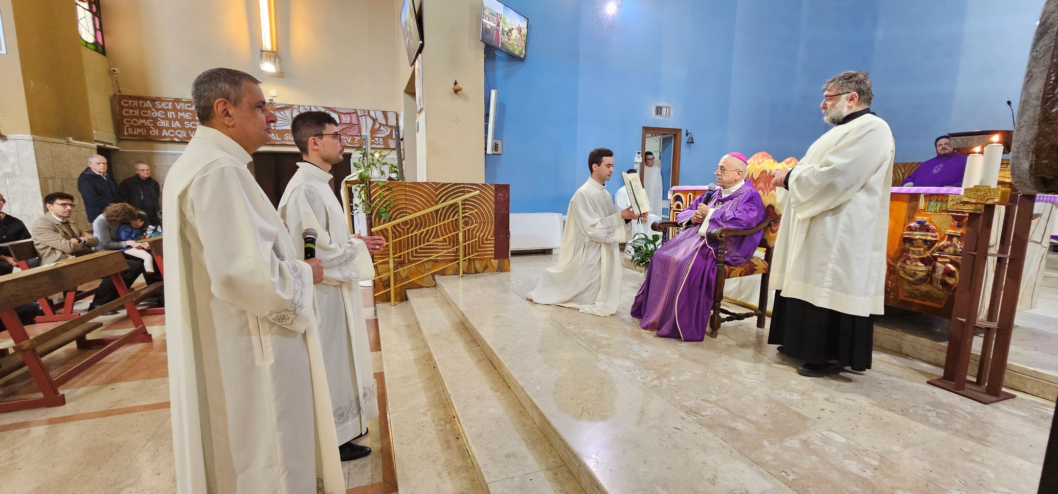 Domenica 30 marzo nella celebrazione presieduta dal vescovo Francesco Soddu della quarta domenica di Quaresima, è stato conferito il ministero dell’accolitato al seminarista Matteo Bergonzini. La messa è stata concelebrata da don Francesco Verzini rettore del Seminario regionale umbro, da don Luciano Afloarei parroco di Santa Maria Regina, da don Roberto Adami, da don Giuseppe Zen. Hanno prestato servizio i seminaristi del Seminario regionale umbro.