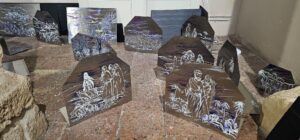 Nei volti dei personaggi di questo presepe predomina un’esigenza di essenzialità, una spontanea creatività, un gesto, un momento capace di rivelare quell’attimo di coscienza disarmata della vita, quell’ improvvisa cognizione di malinconia che sfiora sempre, almeno una volta lo spessore delle cose.