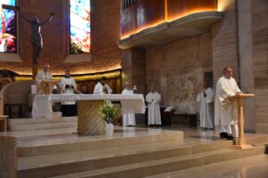 “La presenza di Dio in noi – ha detto il vescovo – ce lo ricorda la festa della visitazione che è la presenza di Dio nella vita di Maria, lei che ci viene incontro come è andata incontro alla cugina Elisabetta. Ciò che porta nel grembo lo condivide. La visita che Maria fa oggi a noi, ma che cosa portiamo nel grembo del nel cuore? lo stesso Gesù che abbiamo ricevuto con il Battesimo. Dare a questo un retrogusto di speranza perchè dipende da noi lascrsi sorfaffare da quello che è negativo, oppure accoglierlo queso negativo e farne uno strumento salvifico. Essere docili all’azione dello Spirito che va oltre il senso della storia che stiamo vivendo, e noi siamo chiamati a dargli una luce nuova. La voce dello Spirito è la voce dell’unità, la voce che cambia le cose della vita in positivo attraverso di noi. La visitazione di Maria è quindi la nostra esperienza con Dio per magnificare, sempre come Maria, il suo nome”.