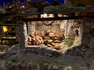 Il presepista Maurizio Petrini lungo gli anni in modo artigianale ha realizzato case, fontane, alberi e altri particolari; oltre a san Francesco quest’anno è stato aggiunta anche santa Chiara.