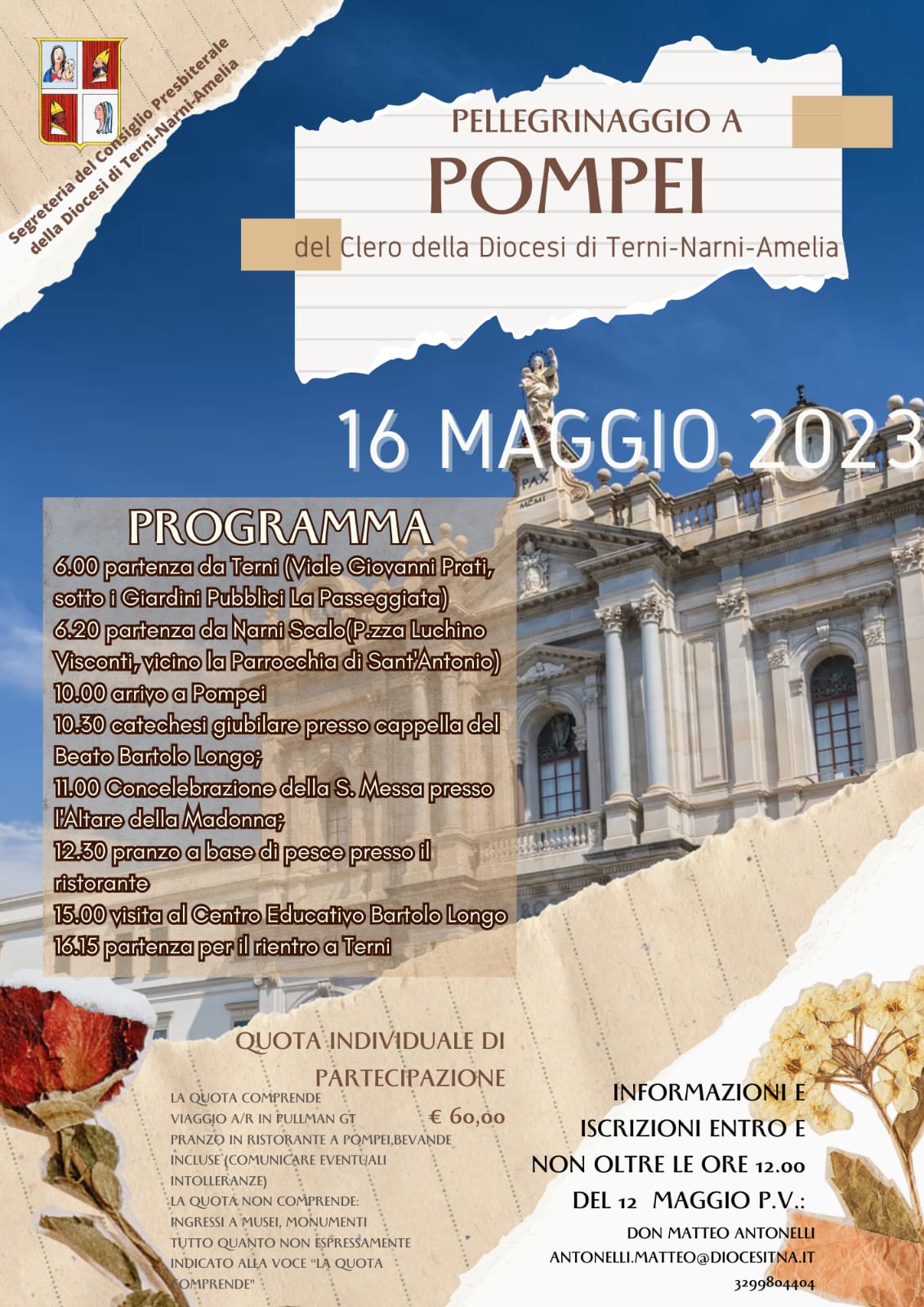Clero – pellegrinaggio diocesano dei sacerdoti a Pompei il 16 maggio